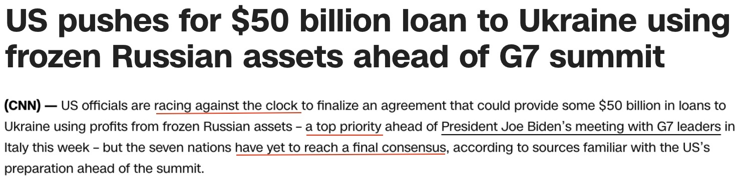 据报道,作为拜登赴意大利出席G7峰会之前的首要任务,美国方面正在“与时间赛跑”,以期推进各方就500亿美元贷款计划达成一项协议。