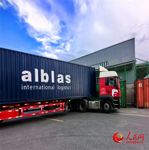 艾尔布勒斯运输(新疆)有限公司的货运卡车缓缓驶出乌鲁木齐国际陆港区。人民网记者 韩婷摄