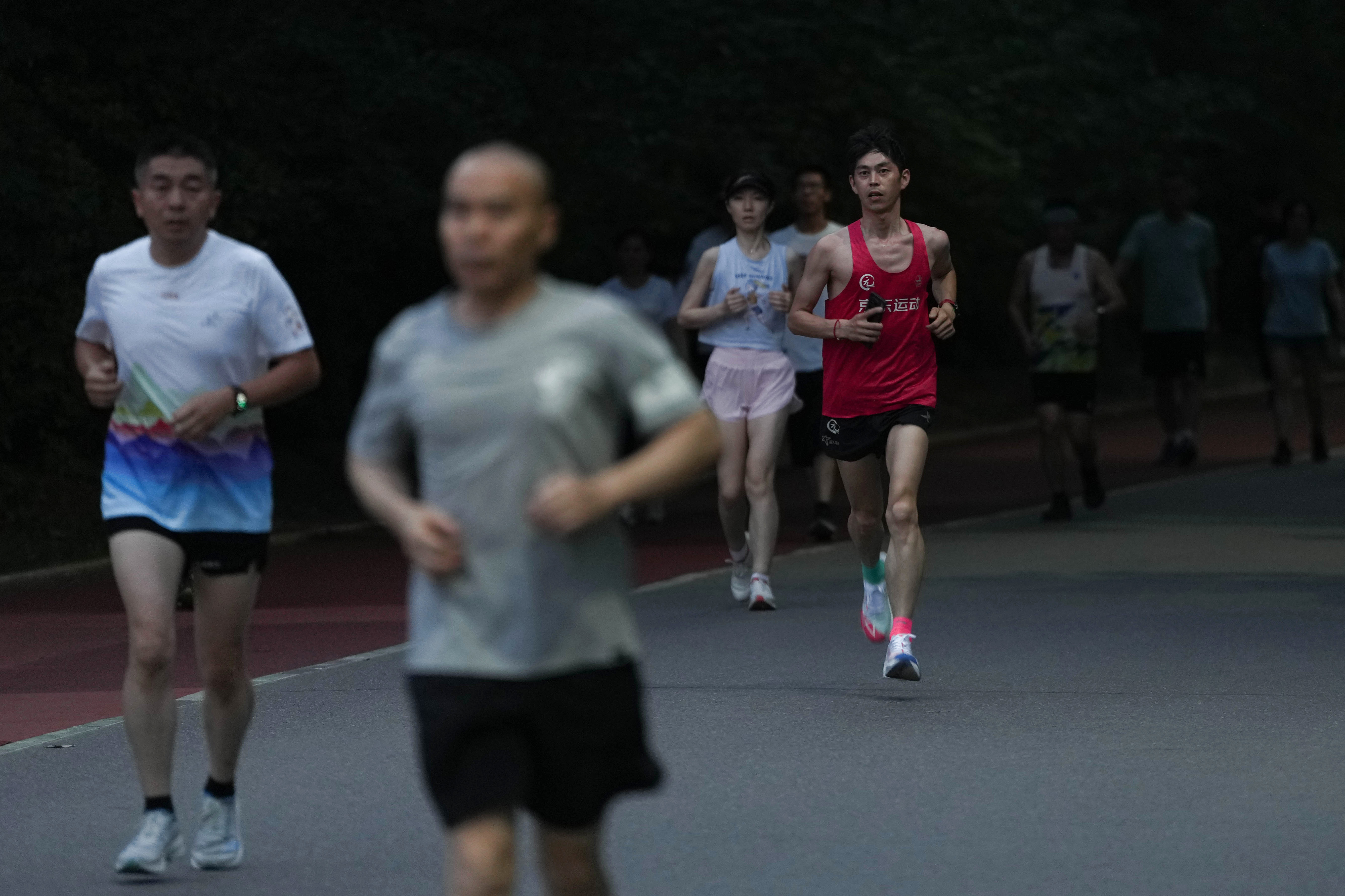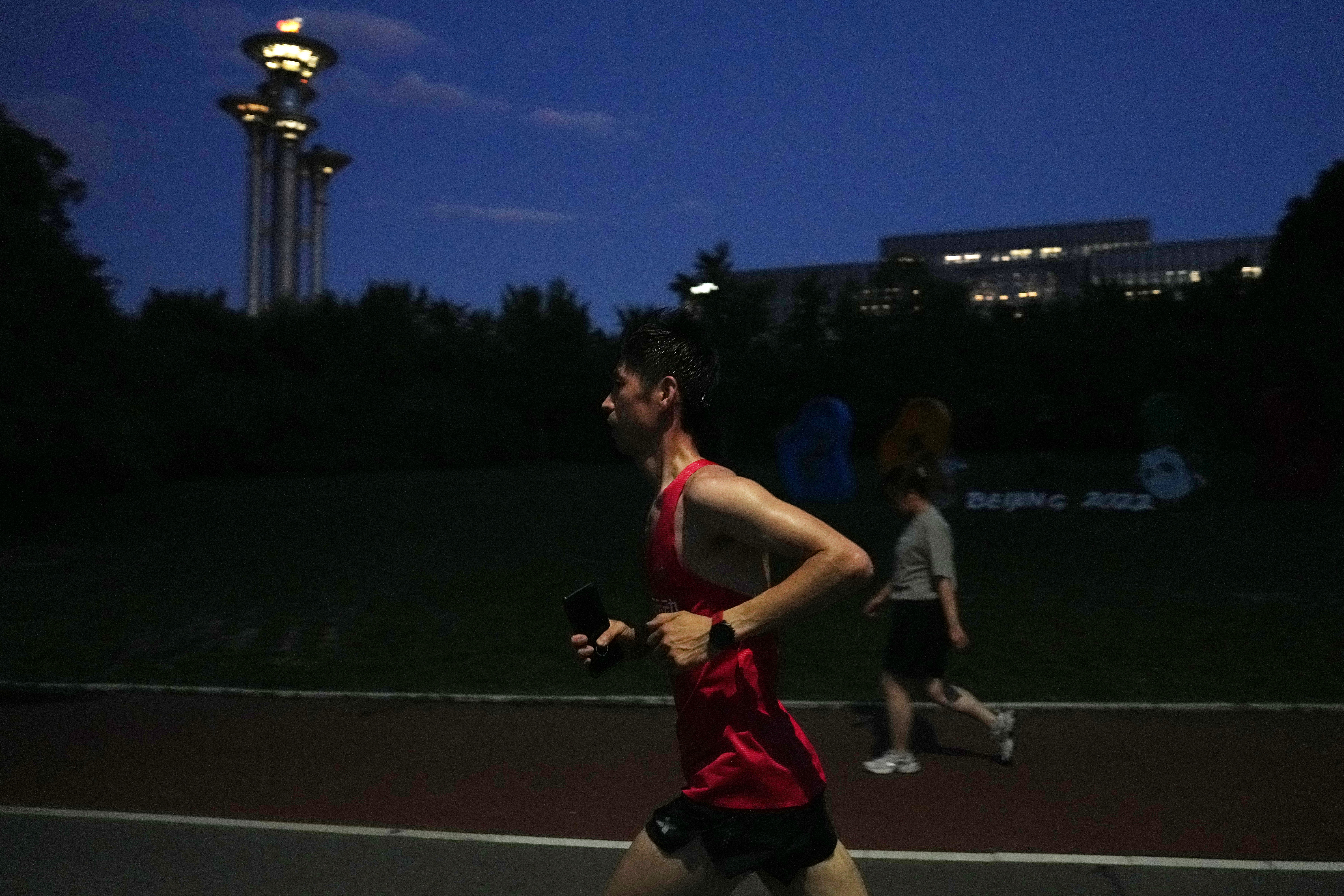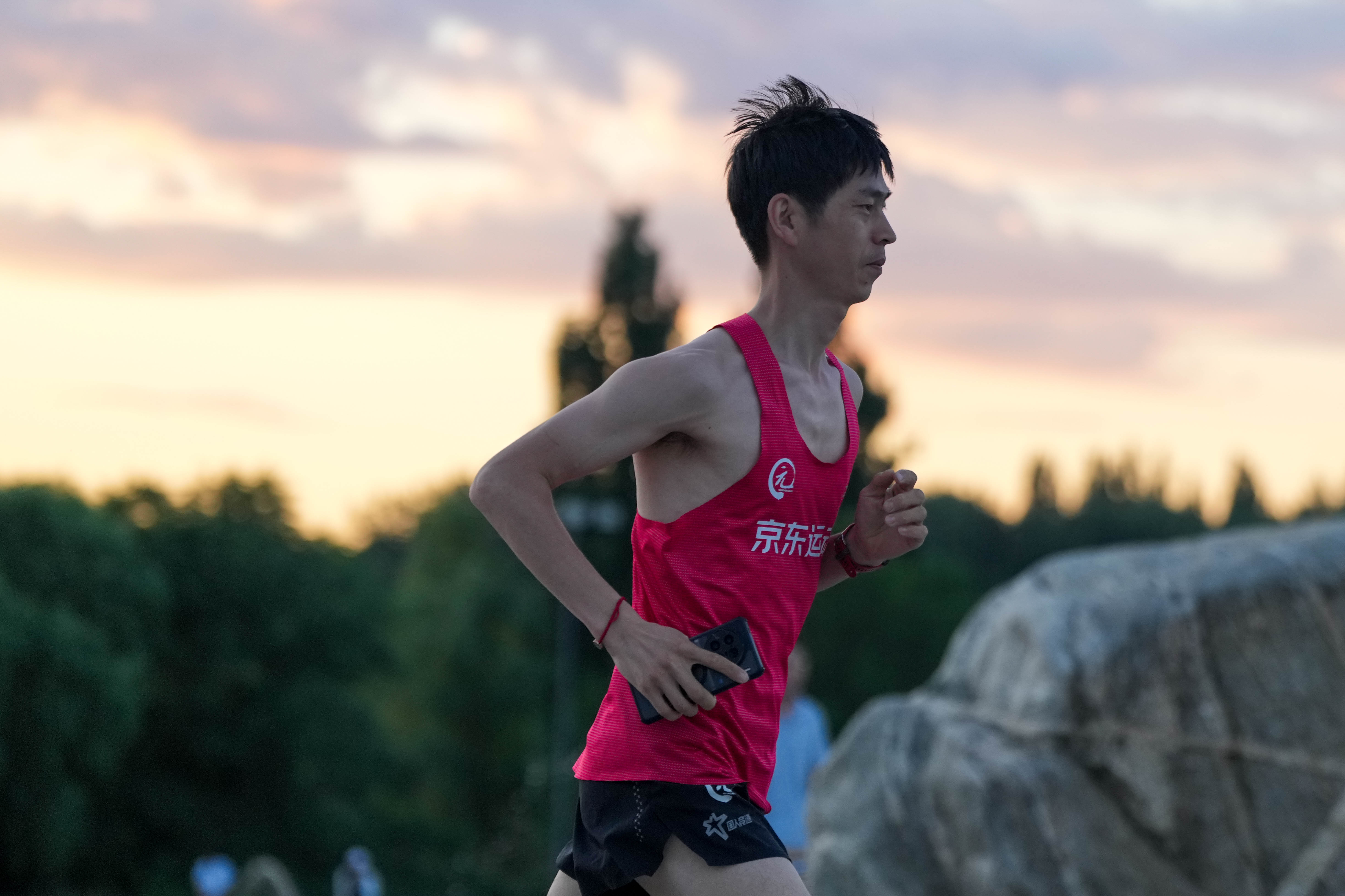 ↑6月24日,栾玉帅在北京奥林匹克森林公园进行跑步训练。