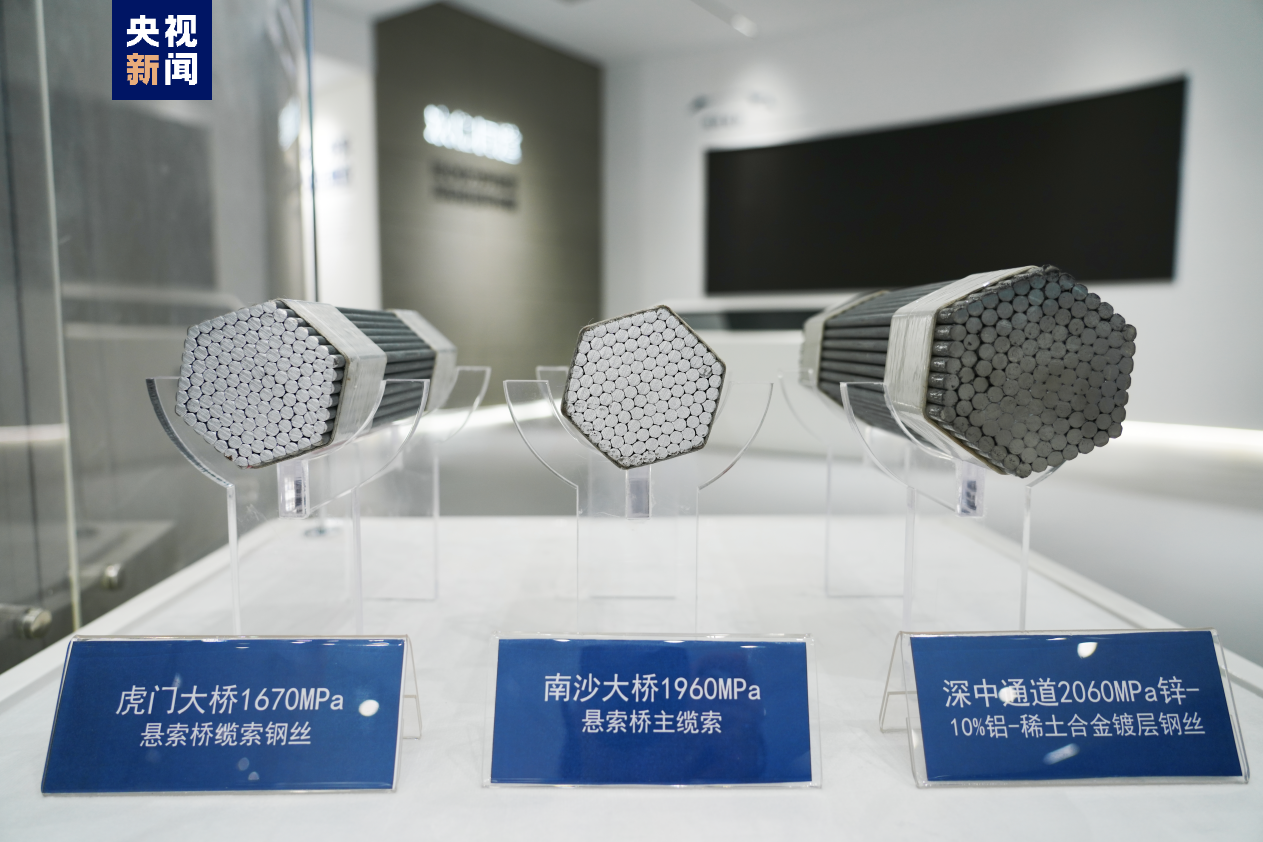为此,中国工程师们经过反复研发,创新性地在锌铝合金镀层中加入镁元素,让钢丝耐久性一跃提高50%。质量更轻、强度更高的国产2060兆帕高强锌铝稀土(镁)合金镀层钢丝,就此诞生。