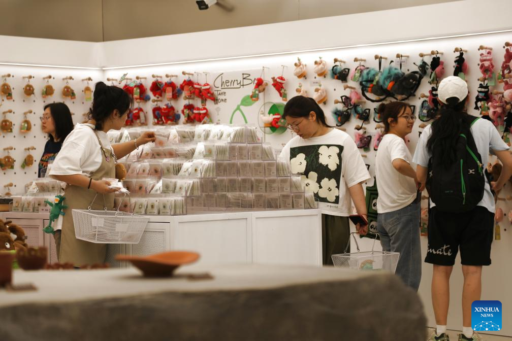 Visitors select cultural and creative products at the art and life gallery affiliated with the Gansu Provincial Museum in Lanzhou, northwest China's Gansu Province, June 13, 2024.