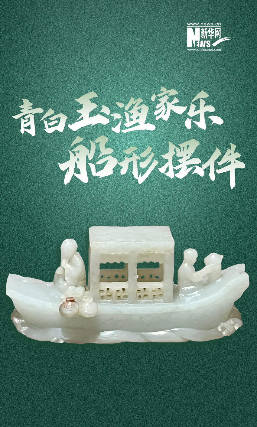 (清)青白玉渔家乐船形摆件,现藏于中国大运河博物馆