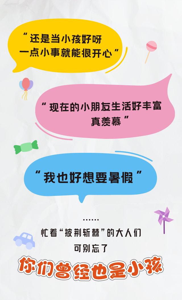 但是,成年人也曾是小孩,只是很多人忘记了这一点。选择在“六一”儿童节这天“出走”做回小孩,又何尝不是对曾经自己的一种“找寻”呢?