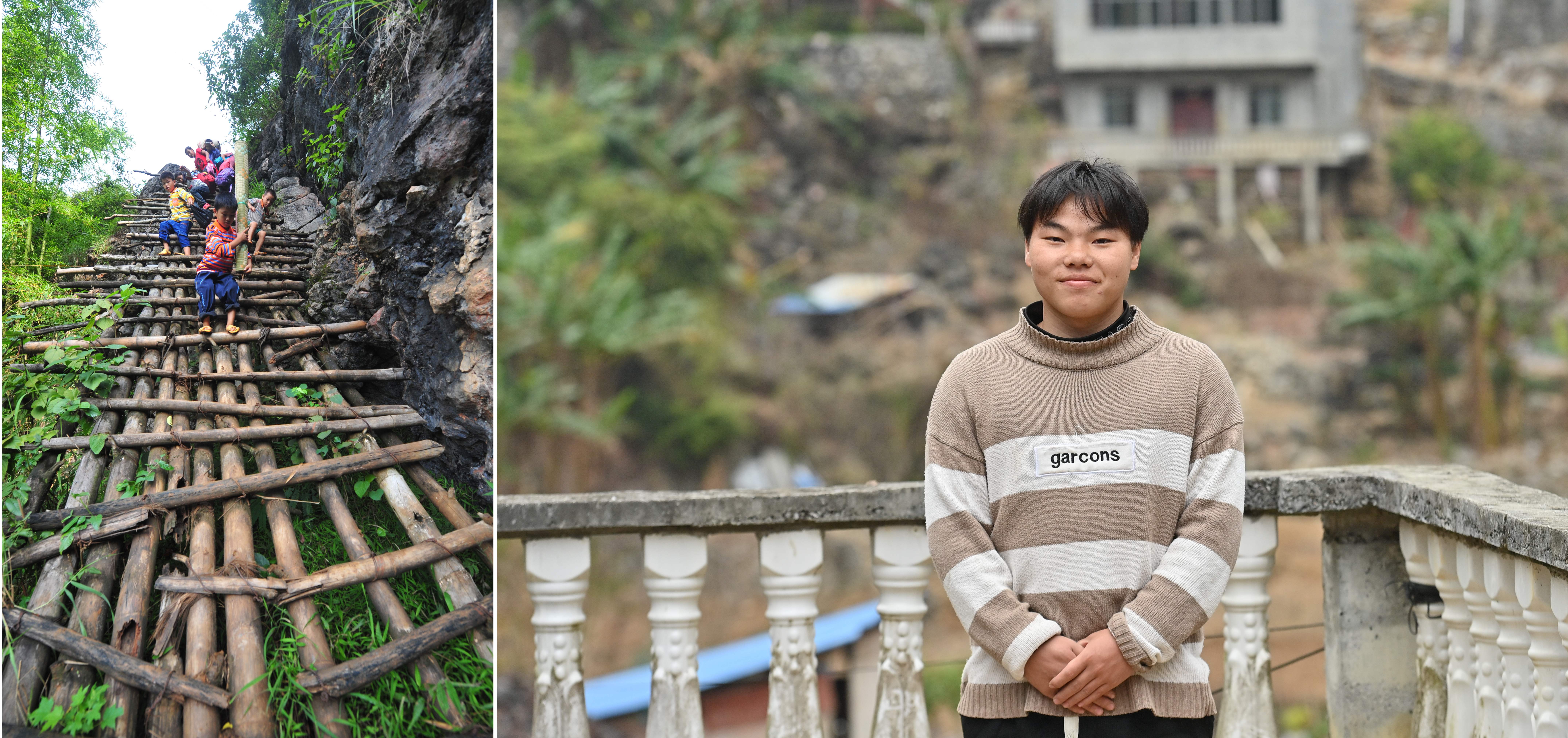 十多年前,在他们读小学时,我每年都会跟他们朝夕相处很长一段时间,拍摄他们攀天梯、爬悬崖去上学、睡大通铺、吃黄豆拌饭……孩子们经常带我去山上看风景,找野果分给我吃,教我玩他们的小游戏。我则在工作同时牵线搭桥,建宿舍、修水柜……推动改善他们的学习环境。
