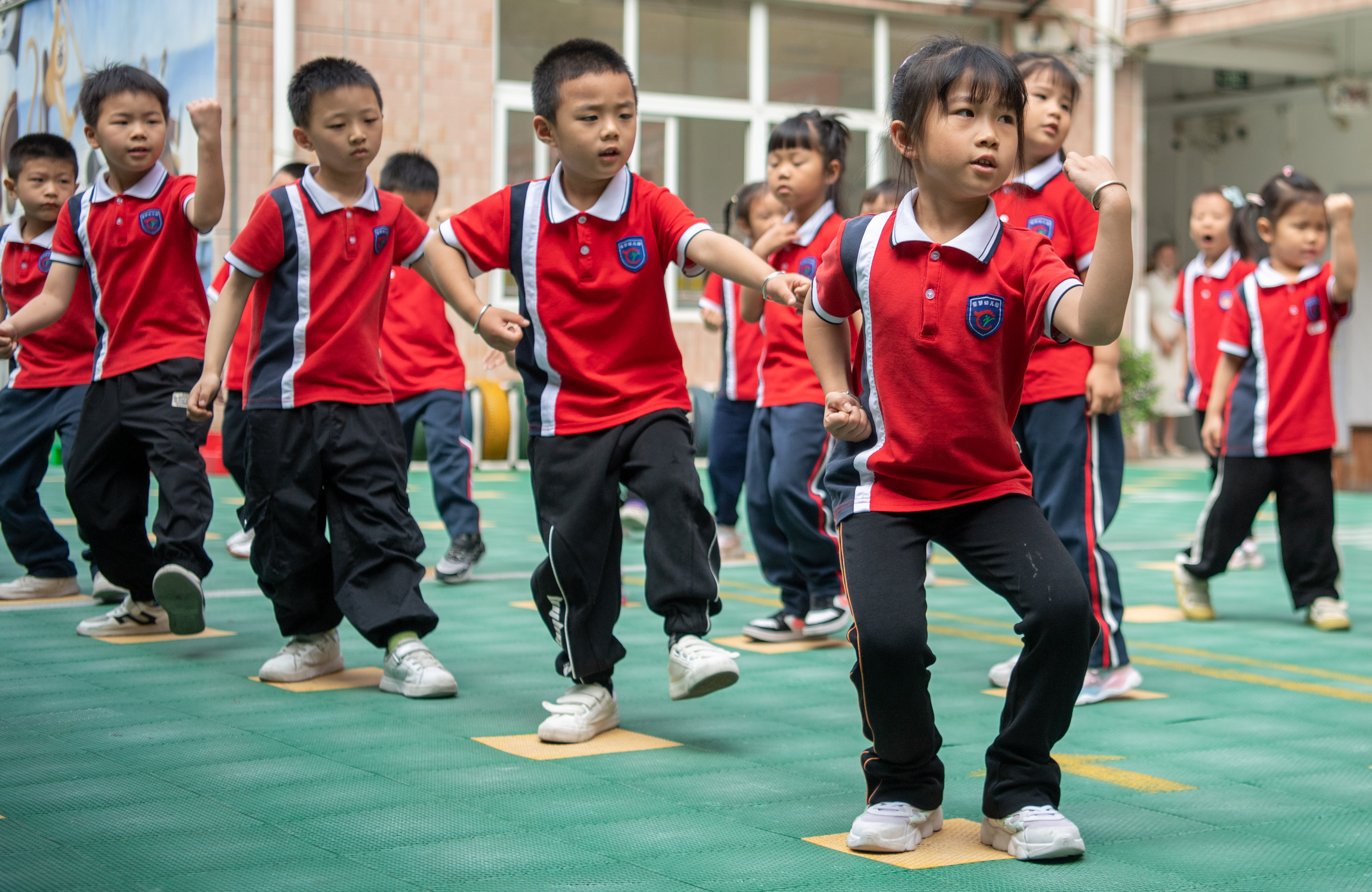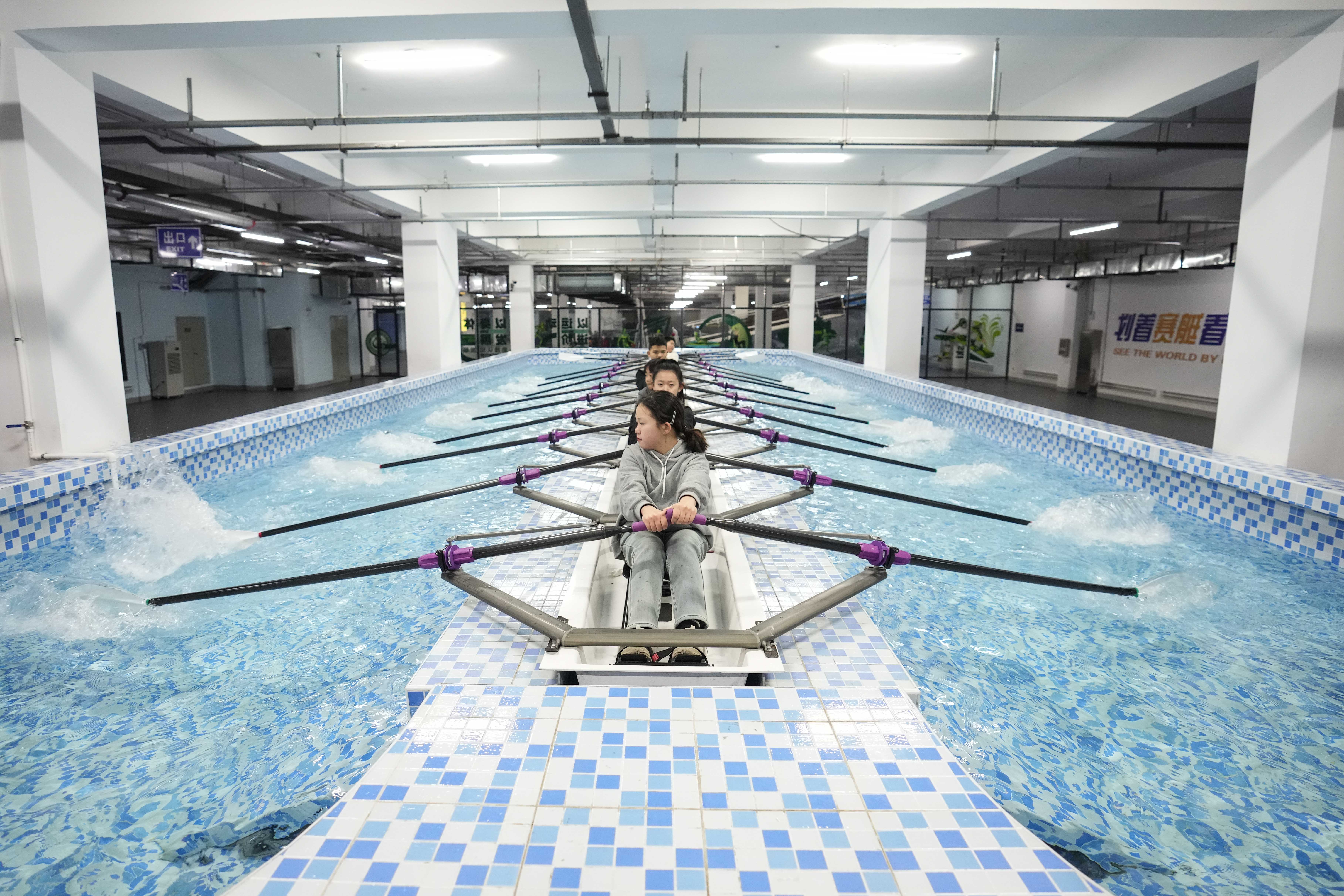 户外走廊上有吊环,墙上能攀岩,柔道馆里两两对抗,荡桨池里配合默契……一所小学变身“体育乐园”,改变了人们对于传统校园的刻板印象。在这里,学生每天在校时间约10小时,各种体育活动超过3小时。
