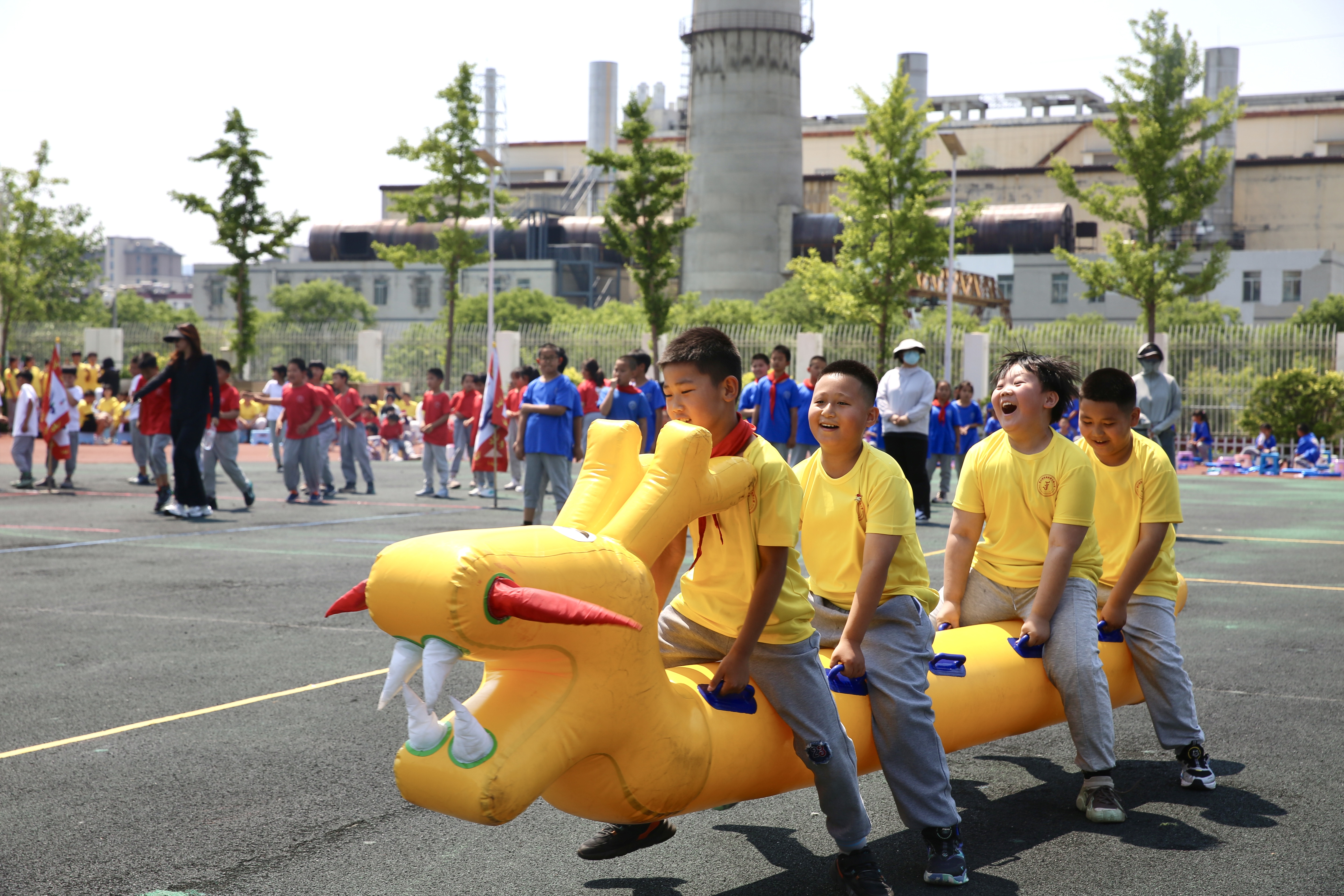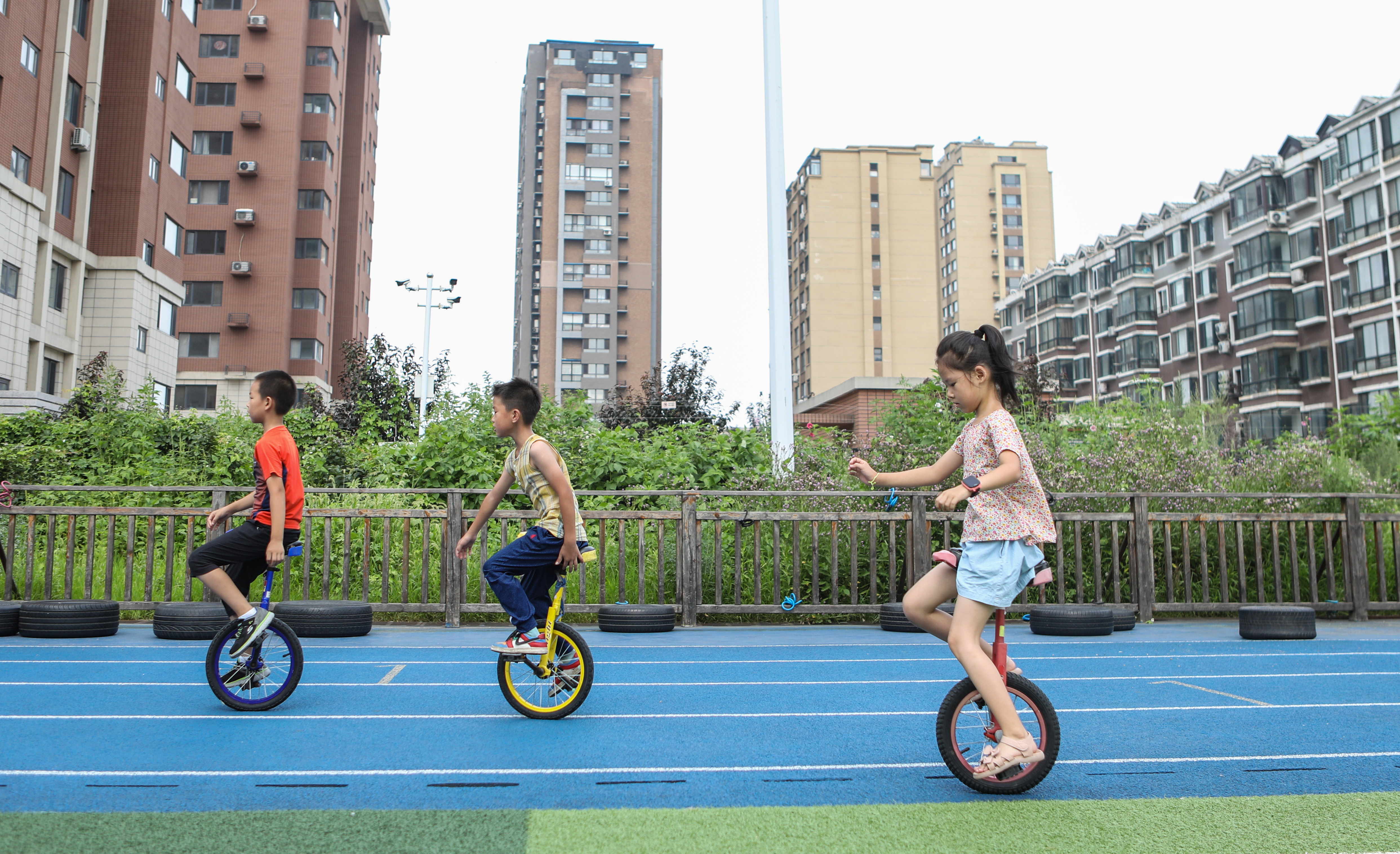 在辽宁省沈阳市浑南区第九小学,学生可以参与攀岩、滑雪、独轮车等约20项运动。教学楼前建了三个16米长的大滑梯,孩子们在里面“纵享丝滑”;空地上1400个轮胎堆得像小山,是撕名牌,玩游戏,肆意翻滚的好去处。