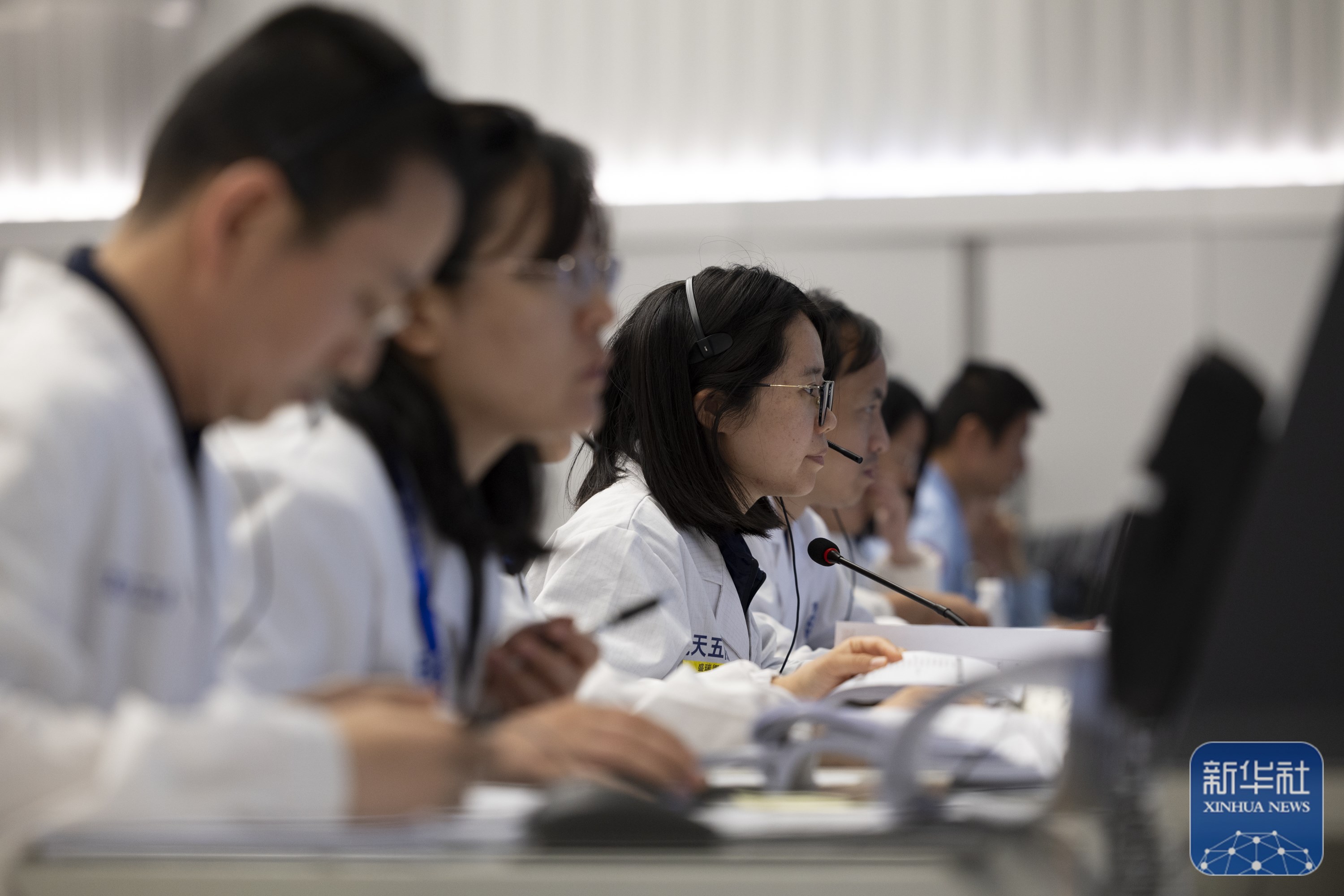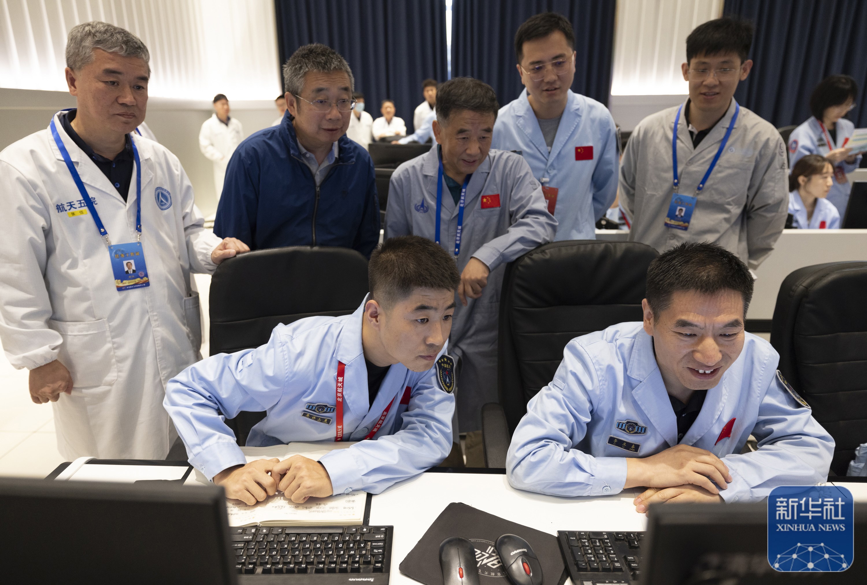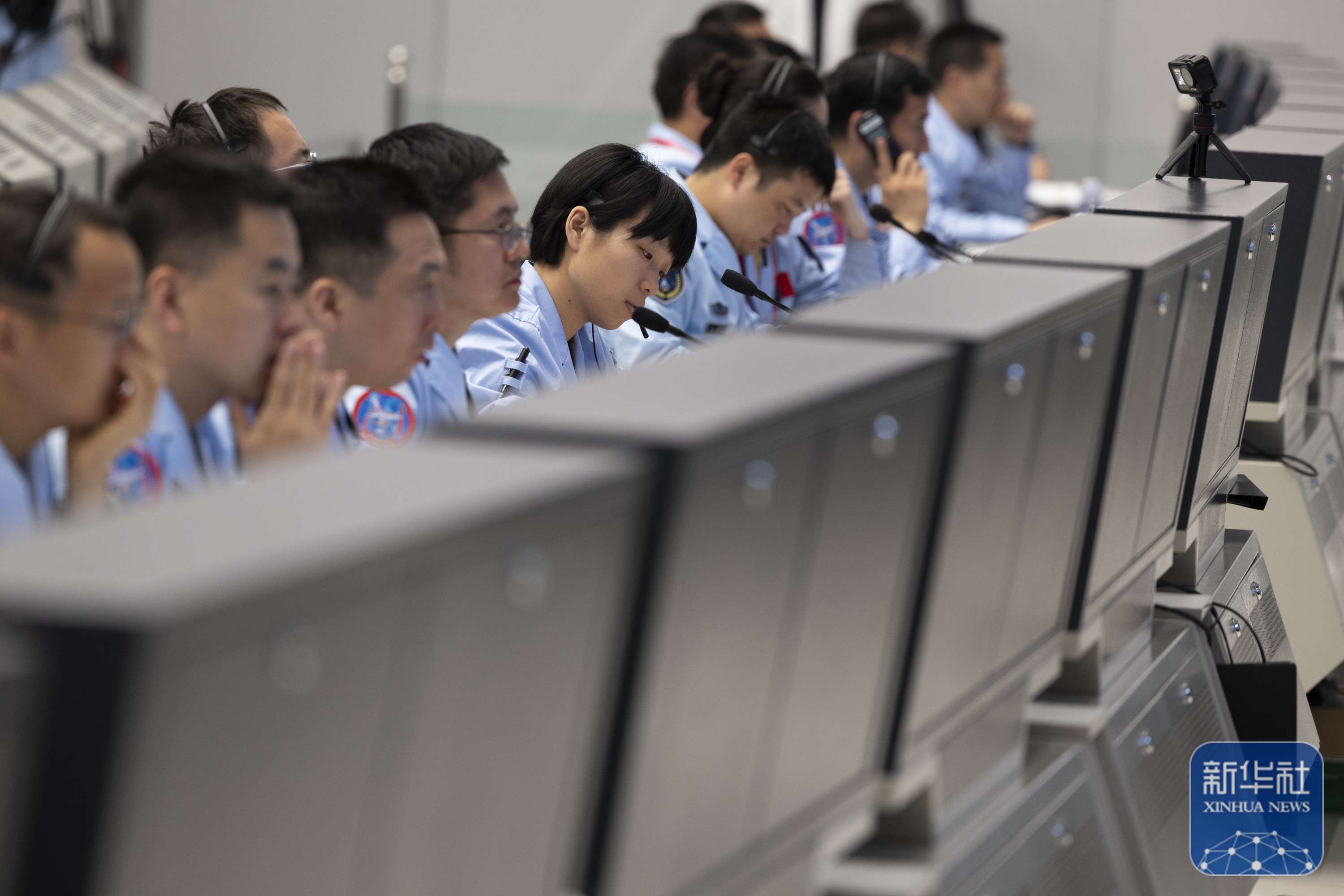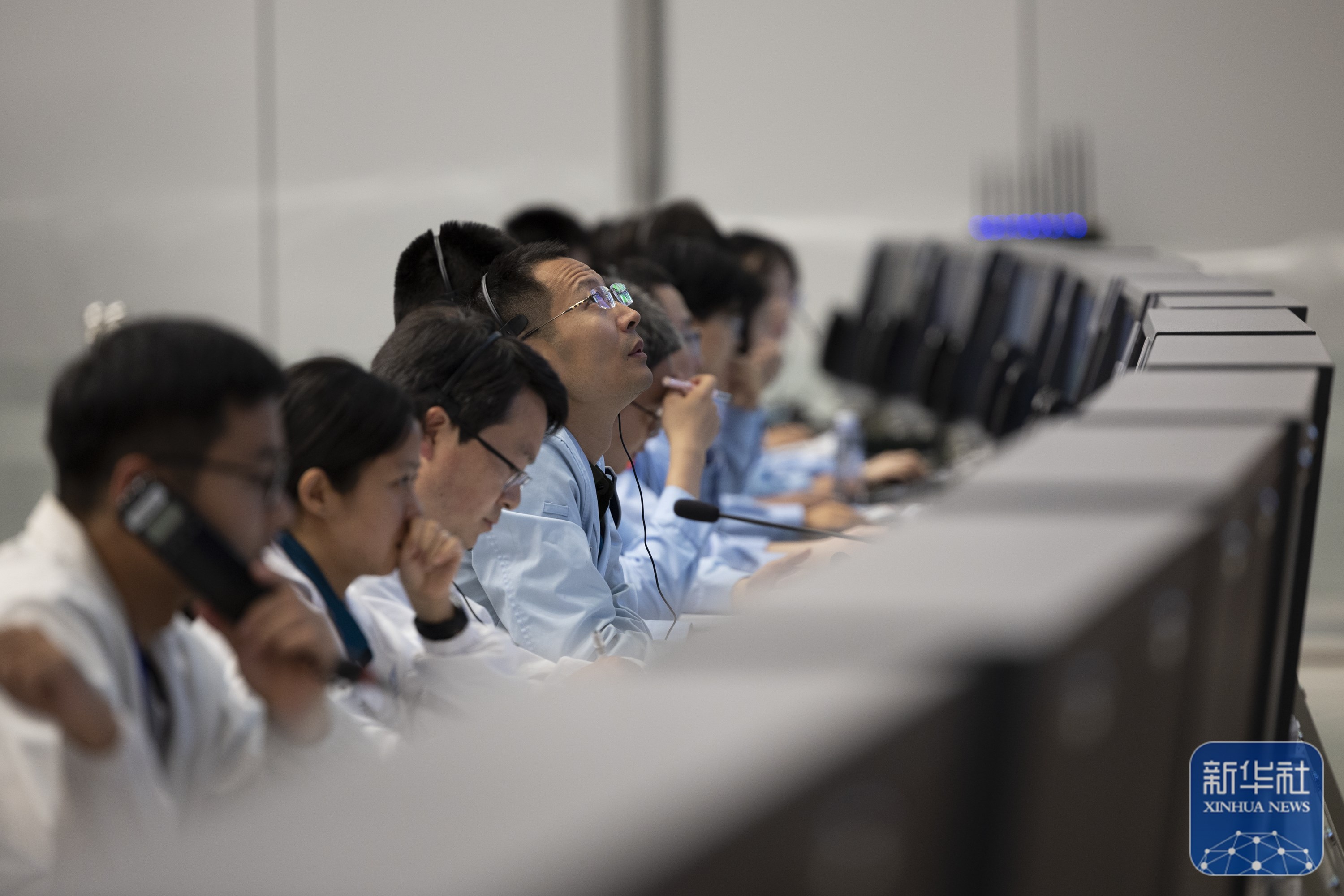 6月2日,在北京航天飞行控制中心,工作人员在监测嫦娥六号着陆器和上升器组合体工作情况。