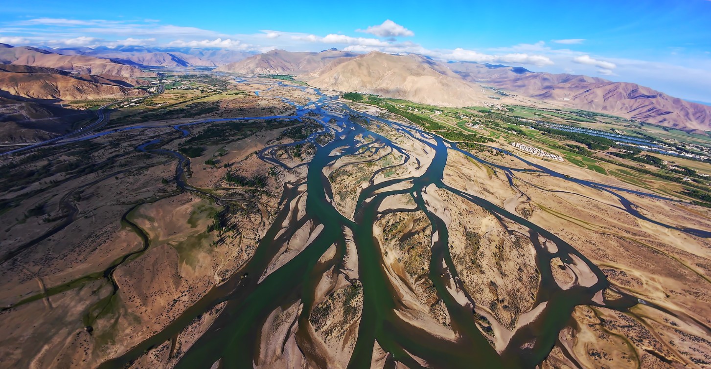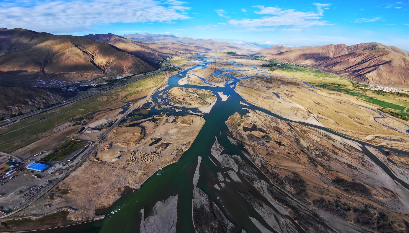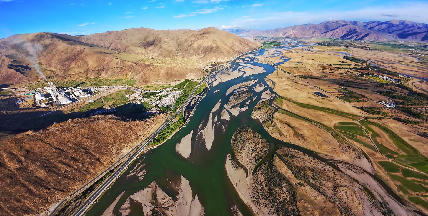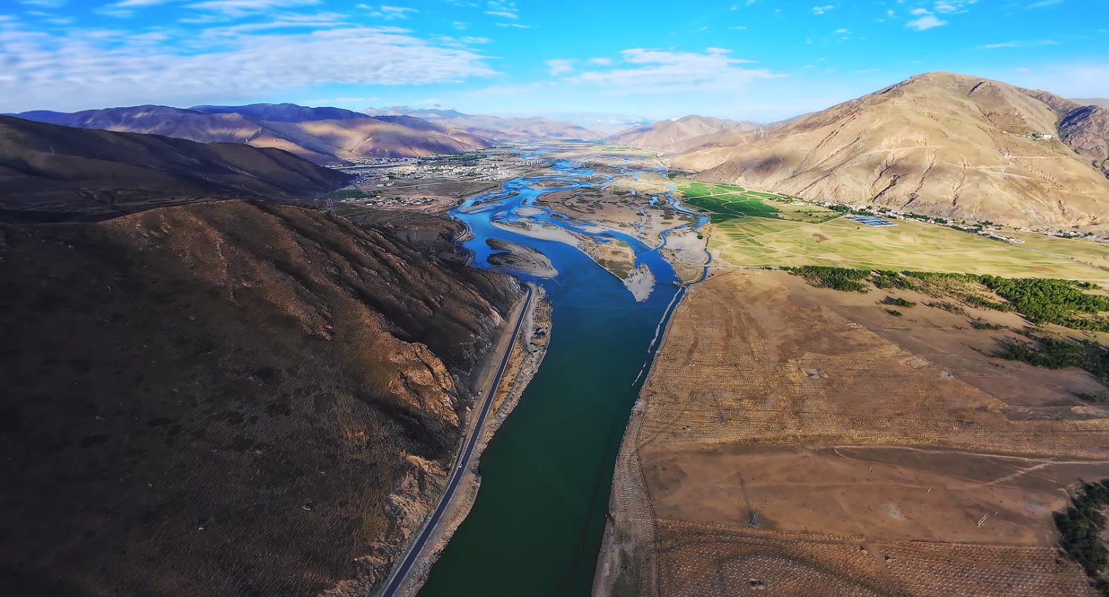 近年来,拉萨市大力进行拉萨河水系生态治理。从拉萨城区柳梧大桥沿拉萨河溯流而上,从空中俯瞰,如今的拉萨河两岸,绿地连绵,河水湛蓝,与金色沙洲互相映衬。拉萨河谷地带娴静安好,好似大自然在群山之间画就的一幅浓墨重彩的画卷。