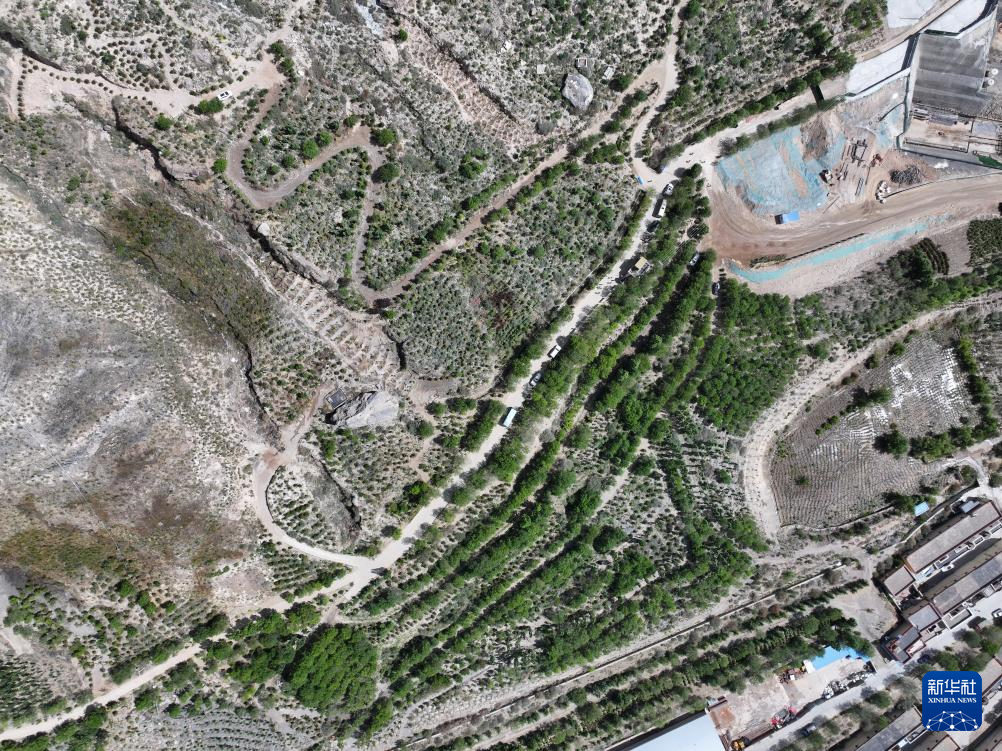 鸟瞰西嘎山绿化一角(6月4日摄,无人机照片)。新华社记者洛卓嘉措 摄