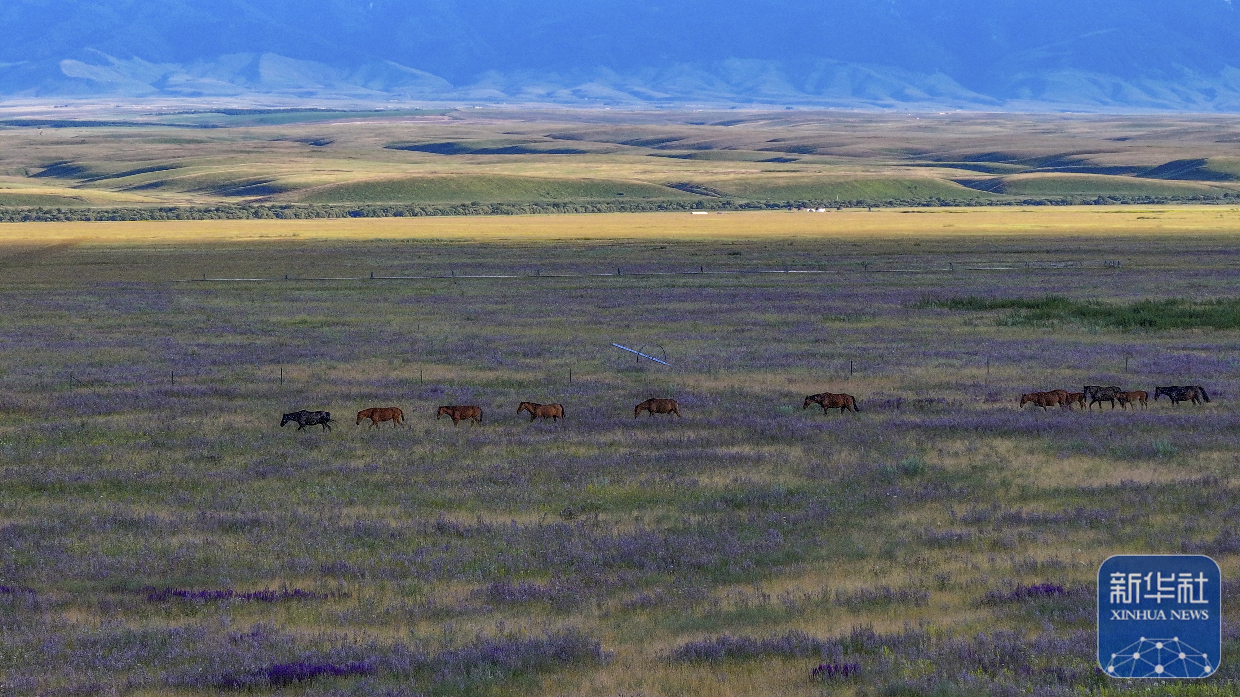 雪山脚下,草场茵茵,骏马驰骋。昭苏县位于新疆伊犁哈萨克自治州西南部一个群山环抱的高位山间盆地,这里气候湿润、水草丰茂,自古盛产良马,有“天马故乡”的美誉。