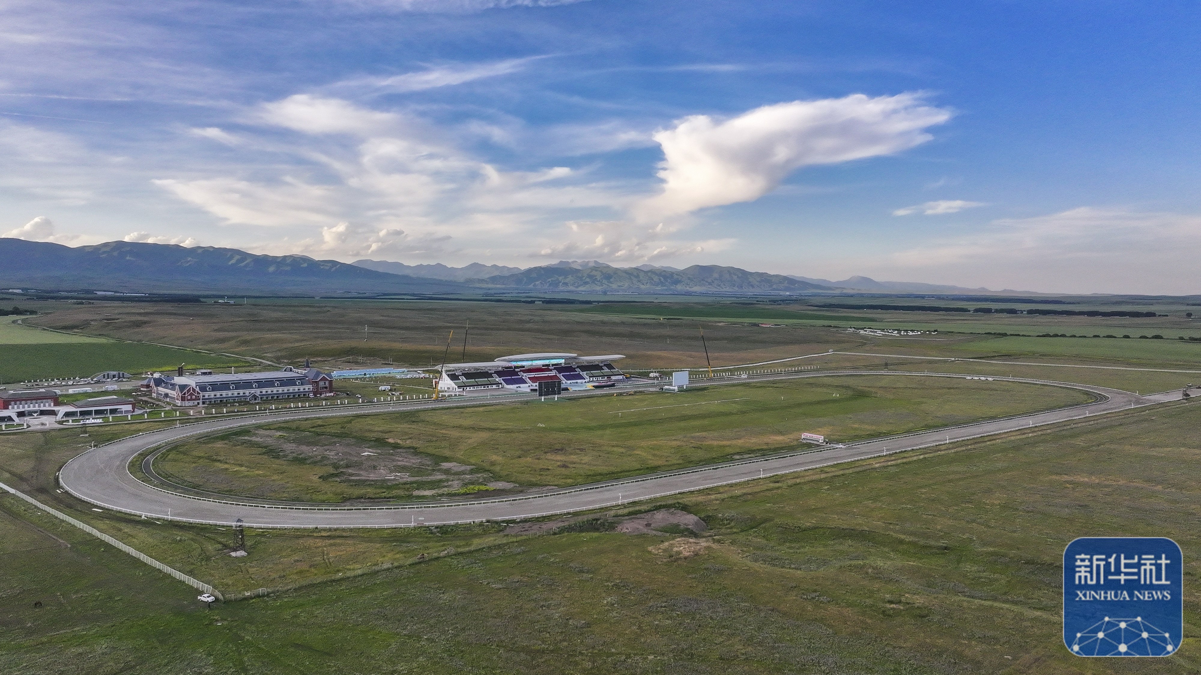 这是7月7日拍摄中国西域赛马场(无人机照片)。7月8日至13日,第十二届全国少数民族传统体育项目运动会马上项目比赛在这里举行。