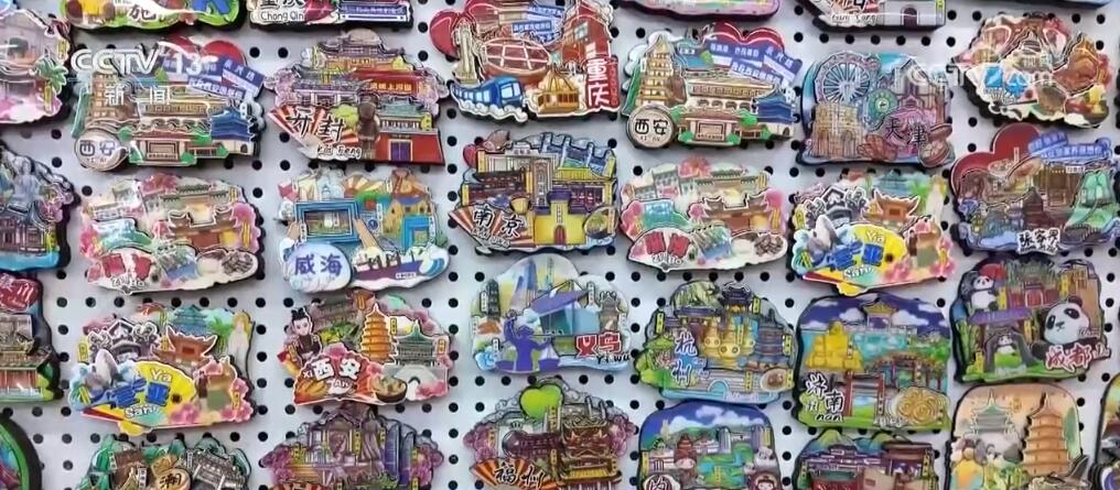 在浙江义乌国际商贸城,走进季腾宇的店,几万种冰箱贴遍布整面墙。做冰箱贴生意十多年的他告诉记者,从销量上,就能看出哪个城市又“火”了。