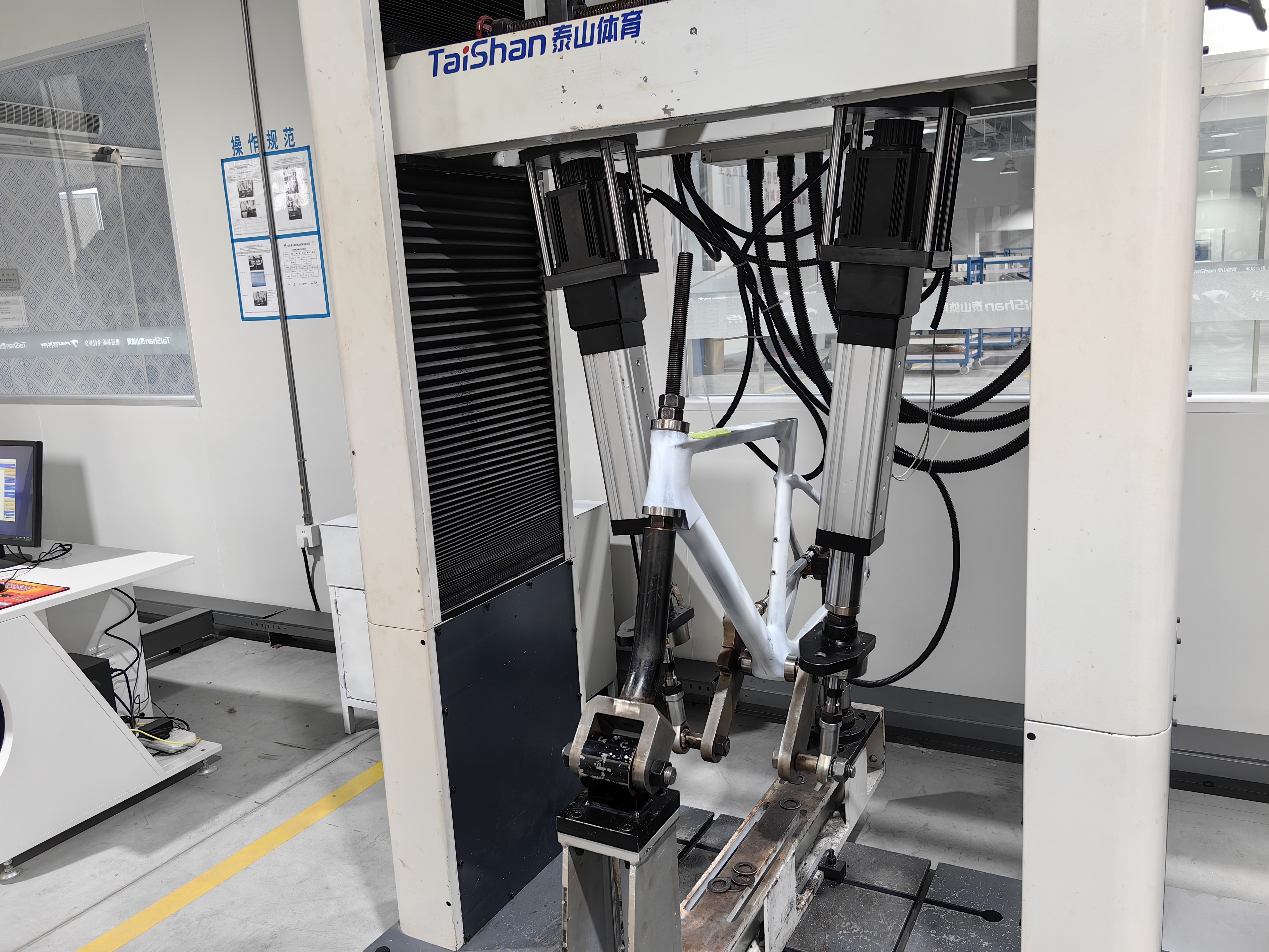 在泰山体育的实验室里,一个带窗户的柜子里传出单调重复的机械敲击声。那是自行车车架在进行疲劳测试。国际自行车联合会规定的标准是10万次——车架经过10万次敲打后不能断裂,泰山体育自行车的标准是12.5万至15万次。