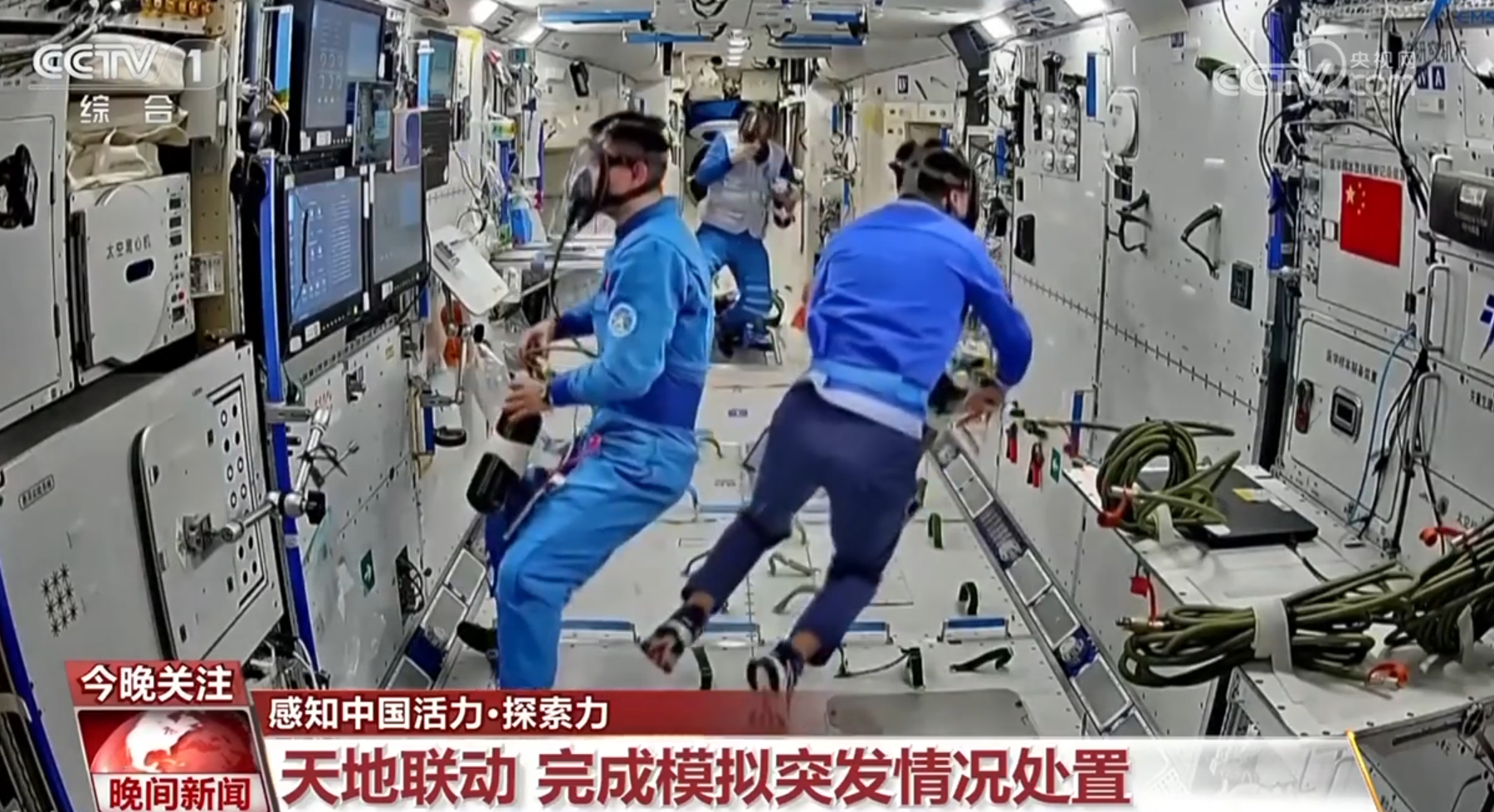 此外,上周神十八乘组还与地面科研人员“天地联动”,完成了一次全系统压力应急演练。此项演练主要是模拟在空间站遭遇空间碎片撞击,面临内部失压情况时,三名航天员进行紧急处置的全流程。演练过程中,天地协同顺利完成模拟突发情况的处置。