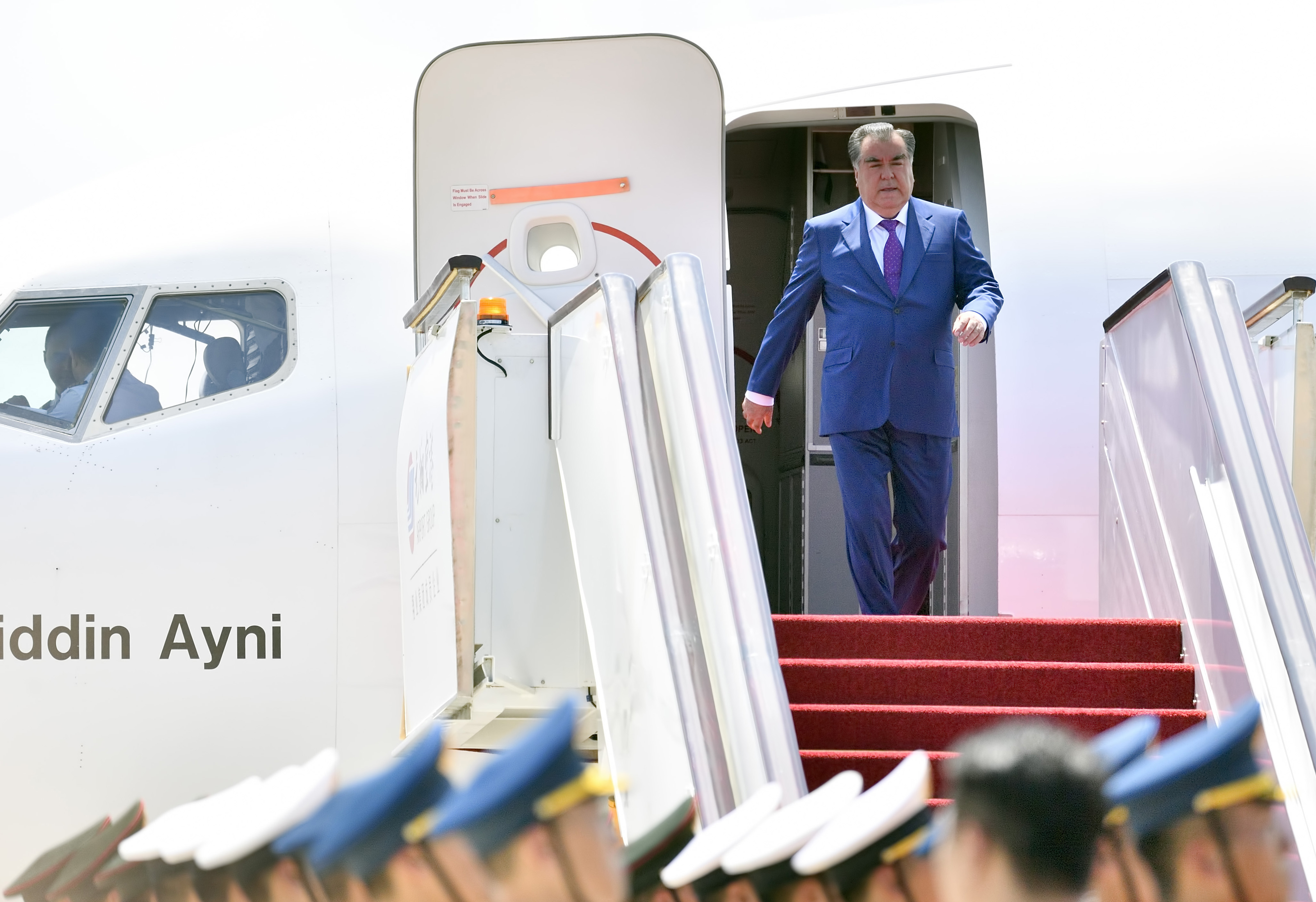2017年9月4日,出席新兴市场国家与发展中国家对话会的塔吉克斯坦总统拉赫蒙抵达厦门。