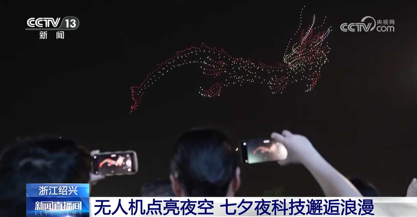 浙江绍兴:无人机点亮夜空 七夕夜科技邂逅浪漫