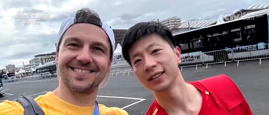 即将告别奥运舞台的德国乒乓球老将波尔,特意找到多次交手的中国选手马龙合影留念。