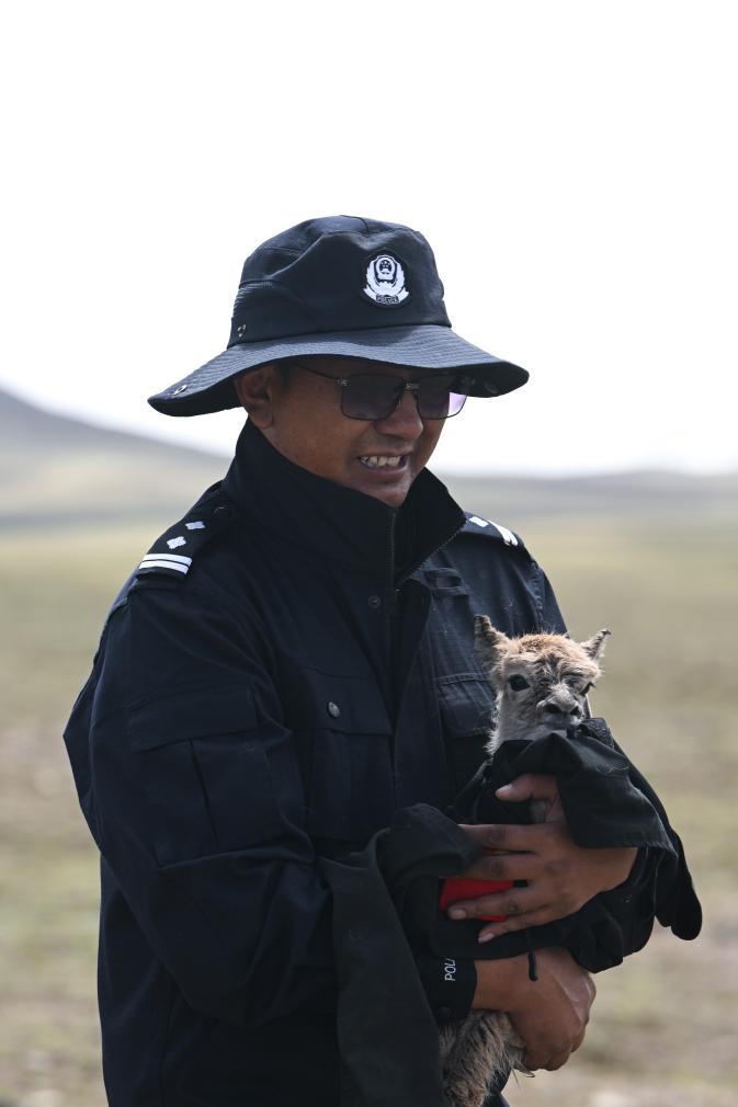 7月8日下午,巡山队员正在对可可西里腹地卓乃湖区域开展巡护。突然,对讲机传来了青海省公安厅森林警察总队五级辅警多结仁欠的声音:“我发现了一只刚出生不久的藏羚羊,它的周围没有其他藏羚羊。”