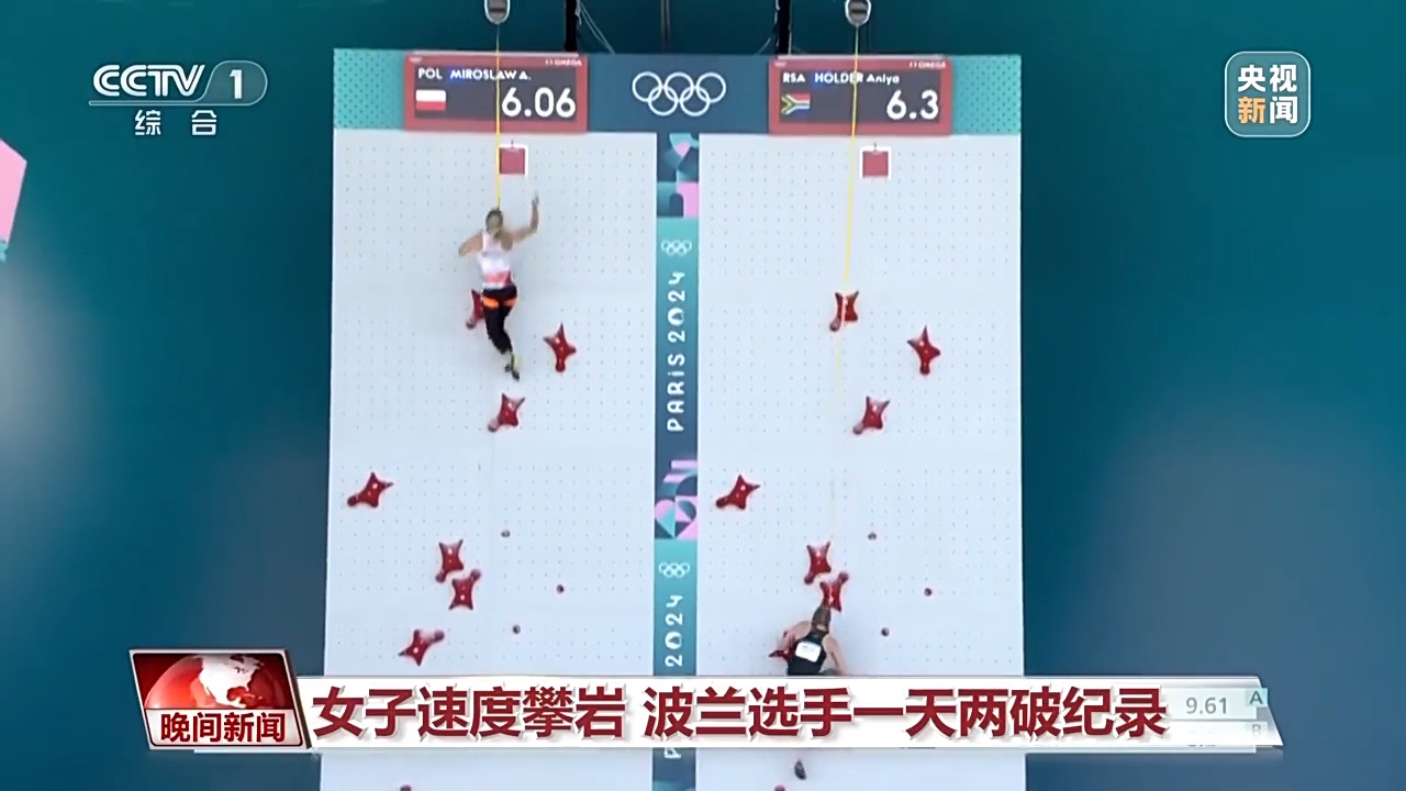 速度攀岩,唯快不破。在女子速度攀岩比赛中,波兰名将米罗斯拉夫一天之内两破纪录,最终将其定格在6秒06,也是奥运会上用时最短的女子项目世界纪录。自2021年以来,这一项目的世界纪录已被刷新9次。人类的运动能力,的确超乎想象。