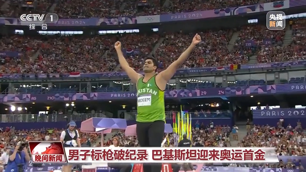 男子标枪决赛中,巴基斯坦选手纳迪姆在第二投投出92米97,将原先90米57的奥运会纪录提高了两米多。最终,他凭借这一成绩拿到金牌,这也是巴基斯坦在本届奥运会上获得的首枚奖牌。