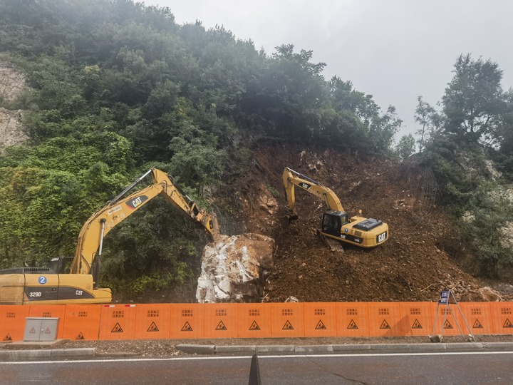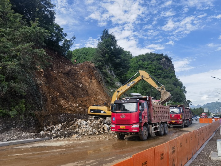 8月6日早7点10分左右,下解放村山上的巨石终于缓缓滑落到路面上。危险解除了,压在干部群众心头的“巨石”,也终于落了地!