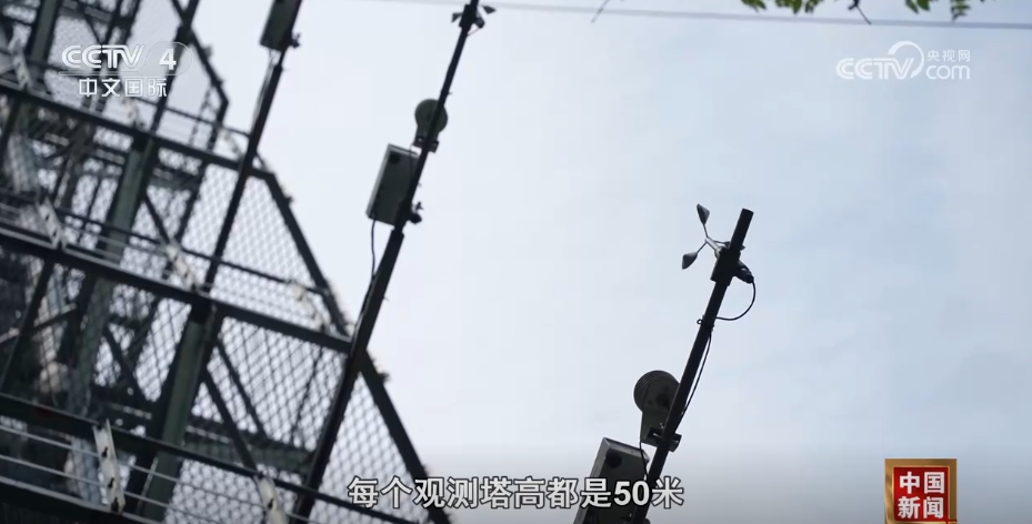 中国科学院清原森林生态实验站工程师于丰源向记者介绍:“这三个观测塔分别对应着不同的林形,像我们所在的1号塔对应的是典型次生林,另外还有两个观测塔对应的是蒙古栎林和落叶松林,每个观测塔高是50米。”