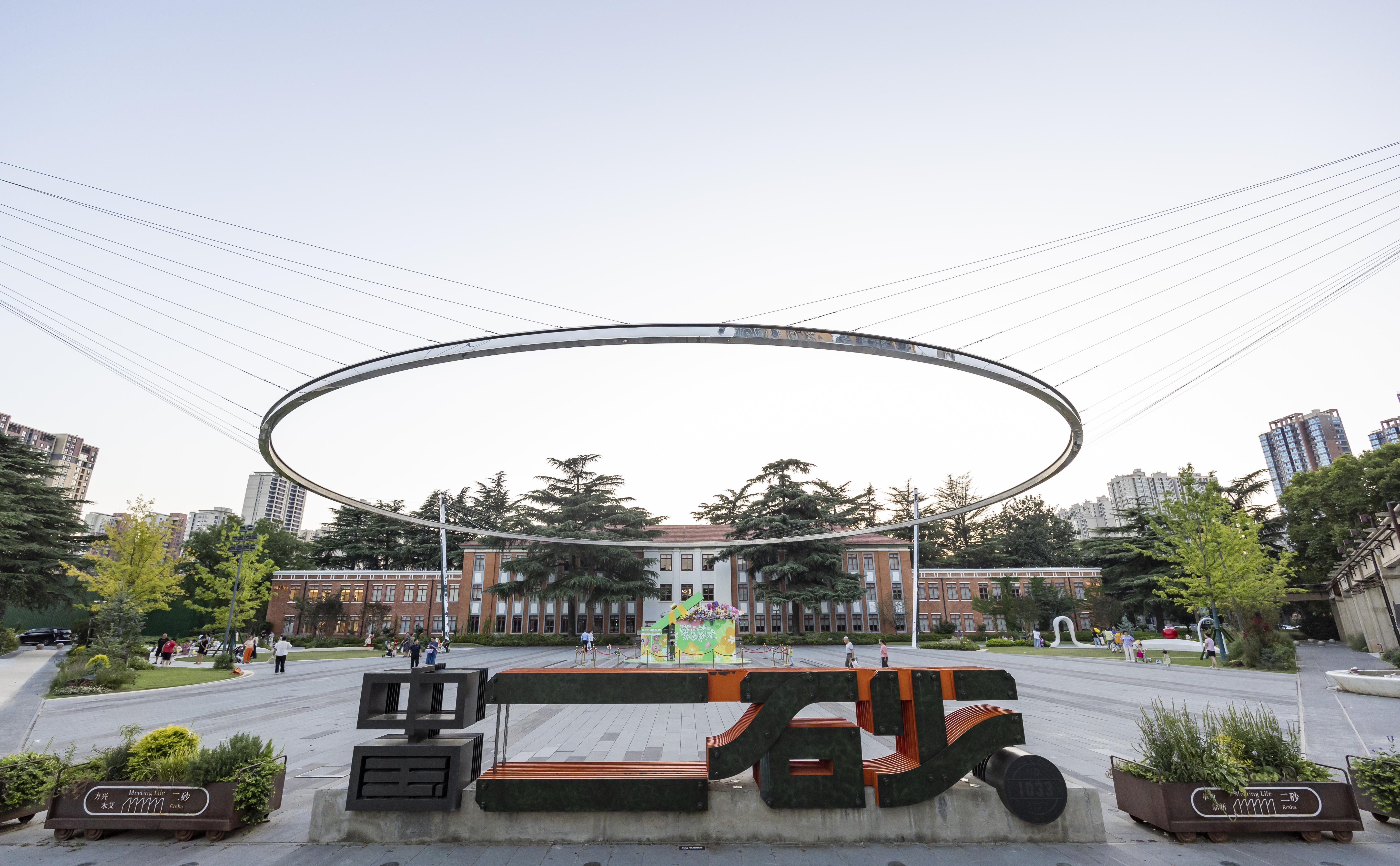 紧挨磨街的是中国第二砂轮厂旧址,这里拥有亚洲现存最大的德国包豪斯式单体建筑。在厂区东广场上,高10米、直径40.2米的“记忆之环”悬在空中,象征这里曾经最为骄傲的工业结晶——砂轮。