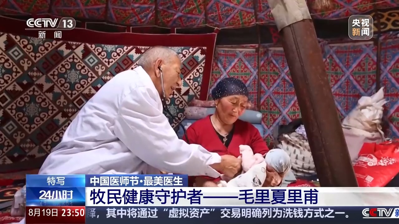 8月19日是中国医师节,中央宣传部、国家卫生健康委发布了2024年“最美医生”。10名医生个人和活跃在全国各地的老年护理团队入选。其中,新疆哈萨克族医生毛里夏里甫·哈帕,他从小随父亲给牧区群众看病。在漫长而艰苦的行医岁月里,始终坚守医者初心,用真情付出诠释着医者仁心、大爱无疆。