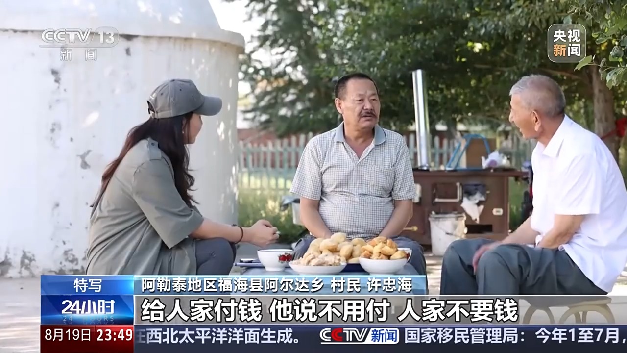 阿勒泰地区福海县阿尔达乡村民 许忠海:看我这个样子挺可怜的,喘不过气来。给我拿药,打针也不要钱。最后要是每年冬天都犯、直不起腰来的话,他就送我到北屯医院拍片子做CT。给人家付钱,他说不用付不要钱,我说这怎么可能呢。