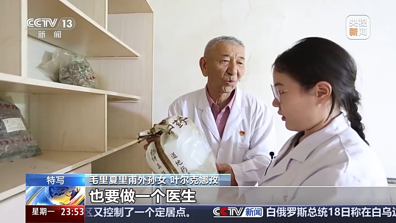 毛里夏里甫外孙女 叶尔克娜孜:看到了那些被他治好的病人,我立志也要做一个这样的人,也要做一个这样的医生。学医再苦,也没有病人受到的折磨苦;我们多学一点,病人受到的折磨就会少一点。也想成为一个像外公一样的人。