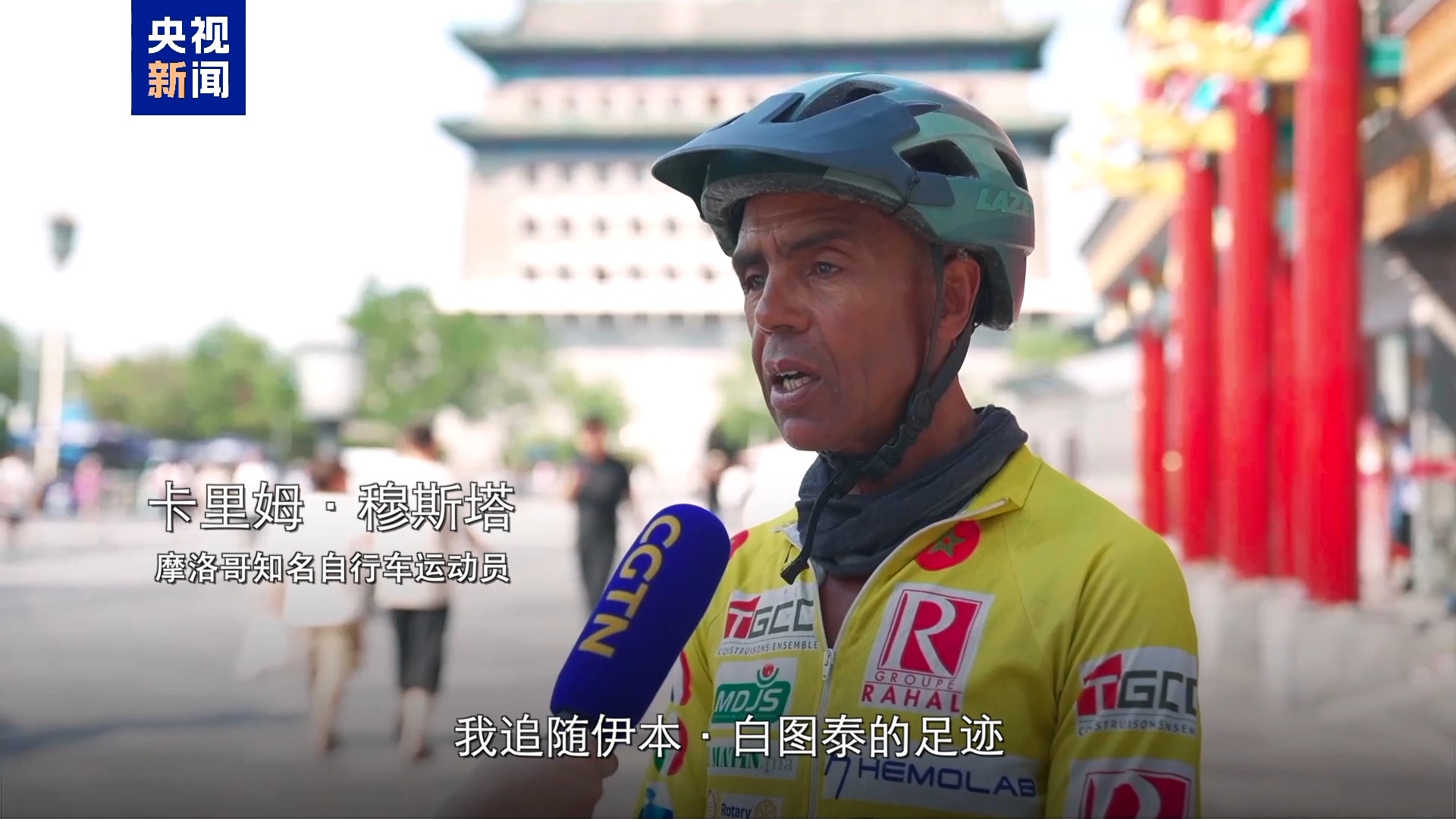 摩洛哥知名自行车运动员 卡里姆·穆斯塔:我追随伊本·白图泰的足迹,从卡萨布兰卡一路来到北京。伊本·白图泰是摩洛哥人,他比我早9个世纪完成了这一壮举。