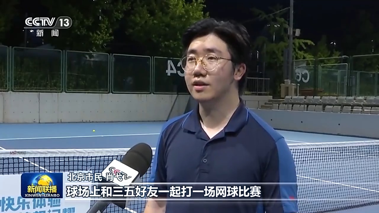 北京市民 肖弋:球场上和三五好友一起打一场网球比赛,其实对于身心的健康、对于放松来讲,都是非常有帮助的。