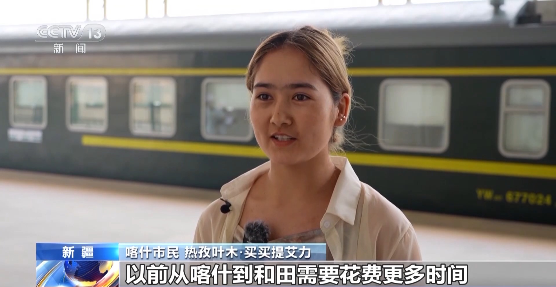 喀什市民 热孜叶木·买买提艾力:以前从喀什到和田需要花费更多时间,现在有了直达特快列车,不仅节省了时间,还让我们感受到了铁路发展的速度和温度。