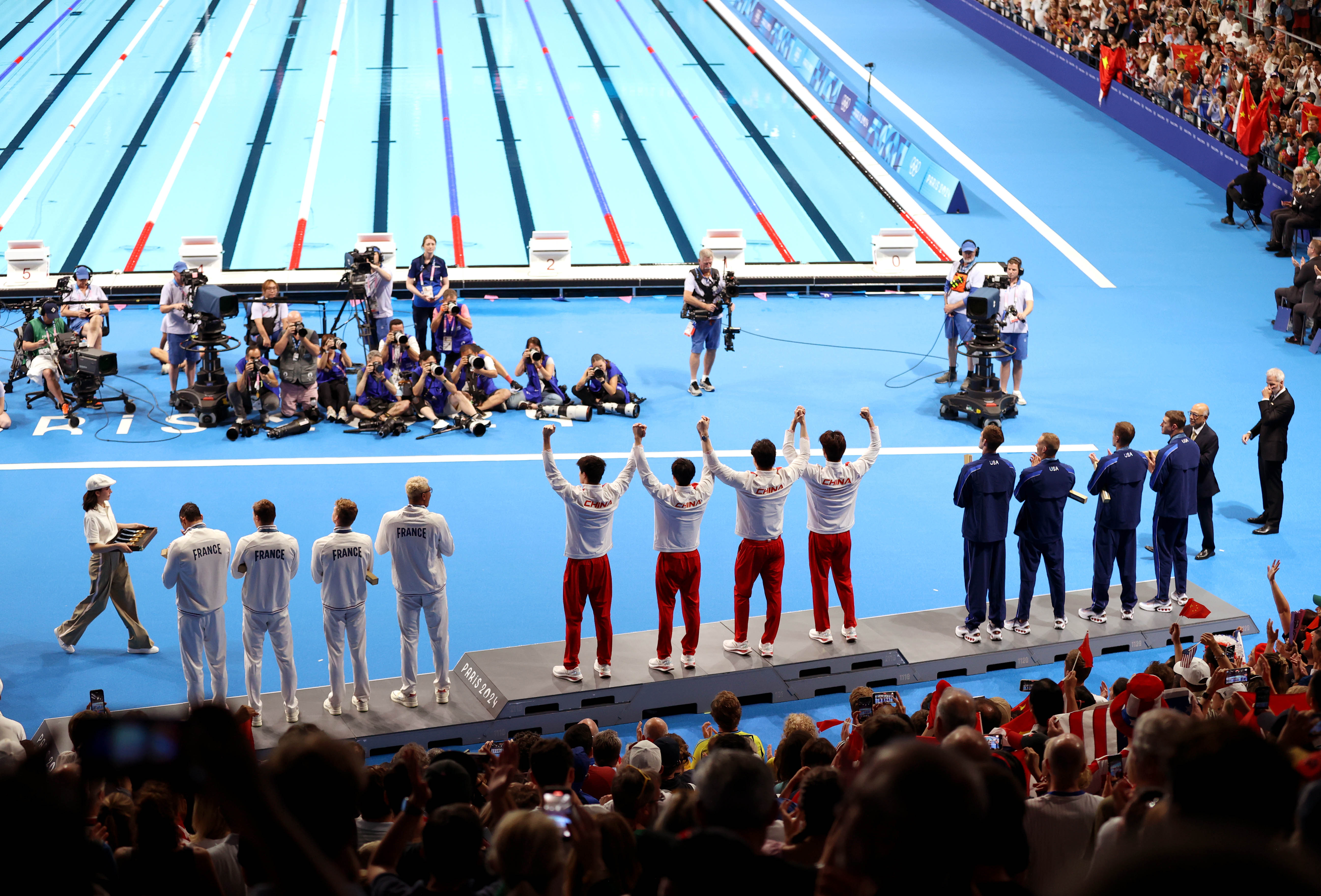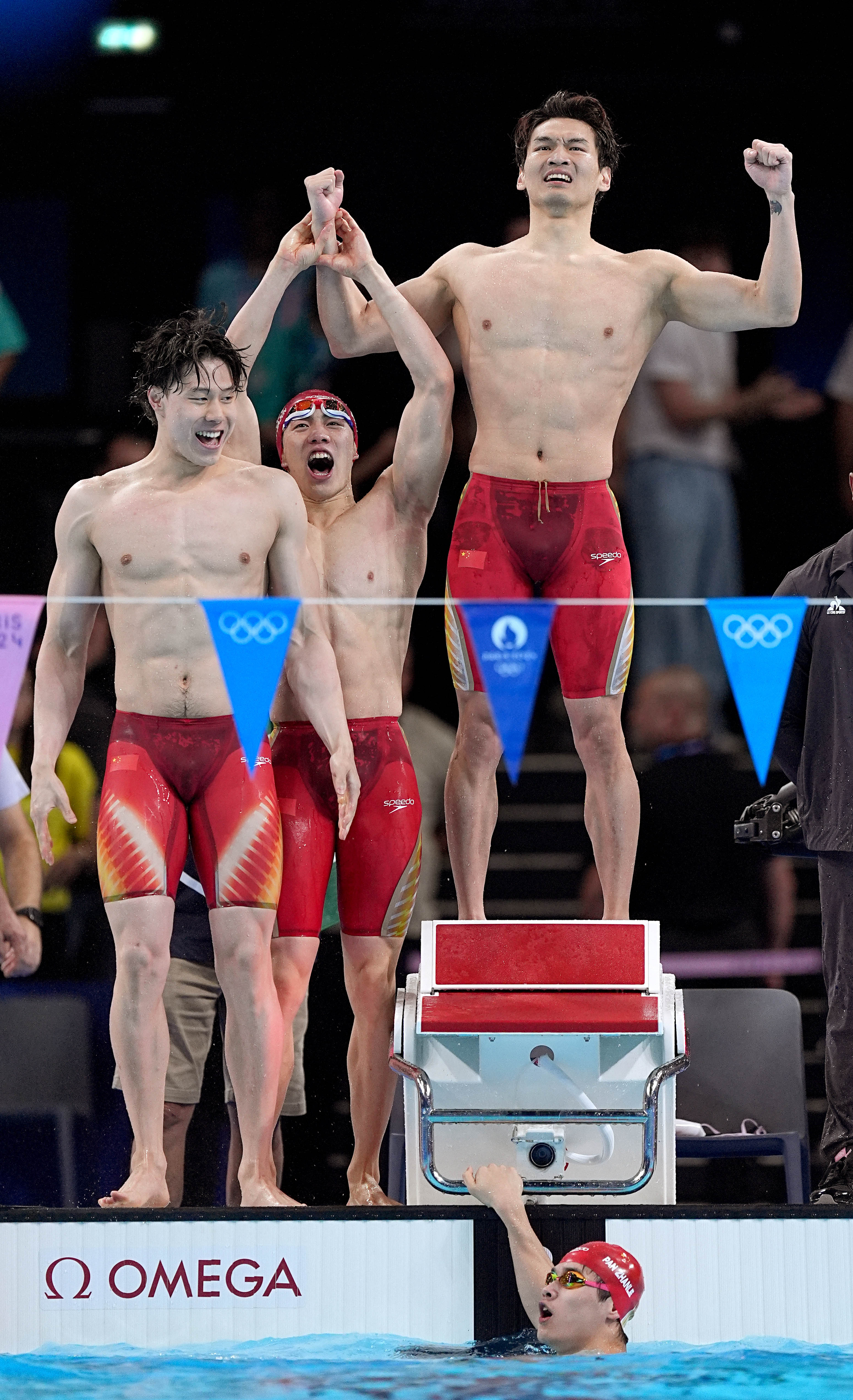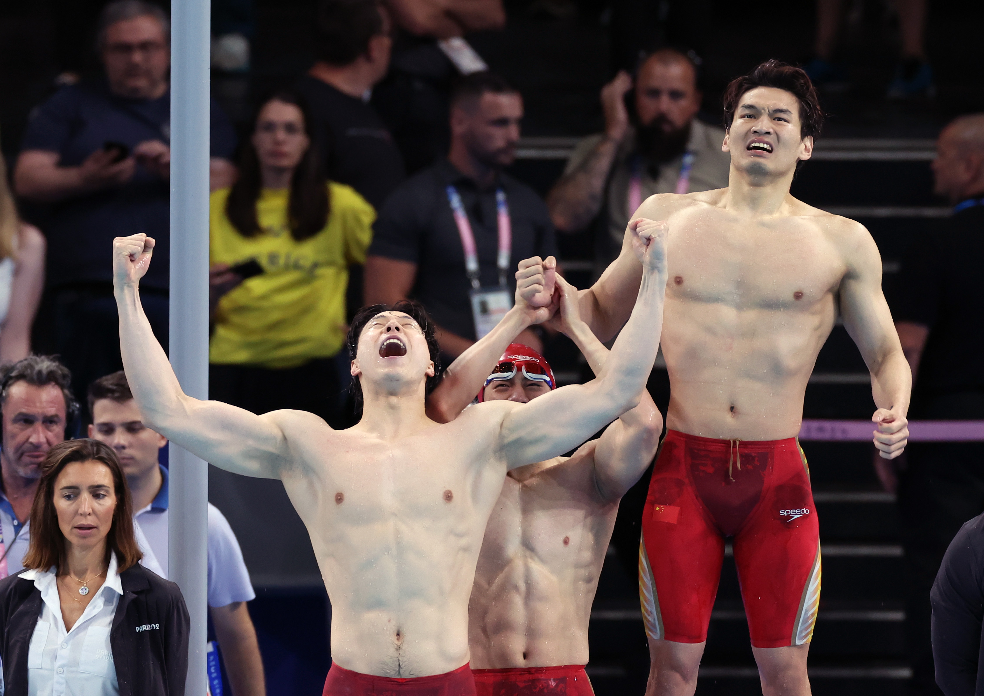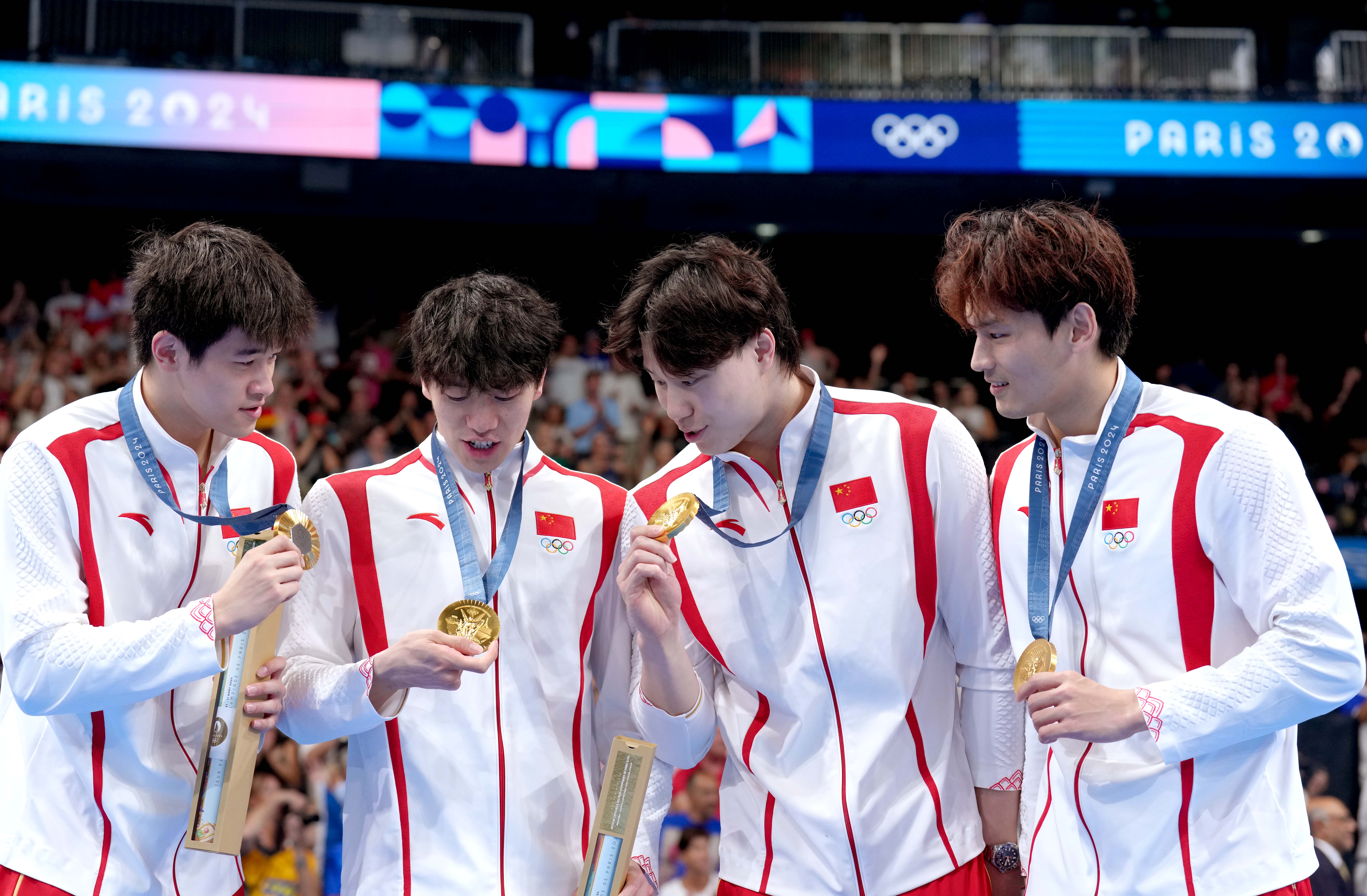 当地时间8月4日,在巴黎奥运会游泳男子4X100米混合泳接力决赛中,由徐嘉余、覃海洋、孙佳俊、潘展乐组成的中国队以3分27秒46的成绩夺得金牌。
