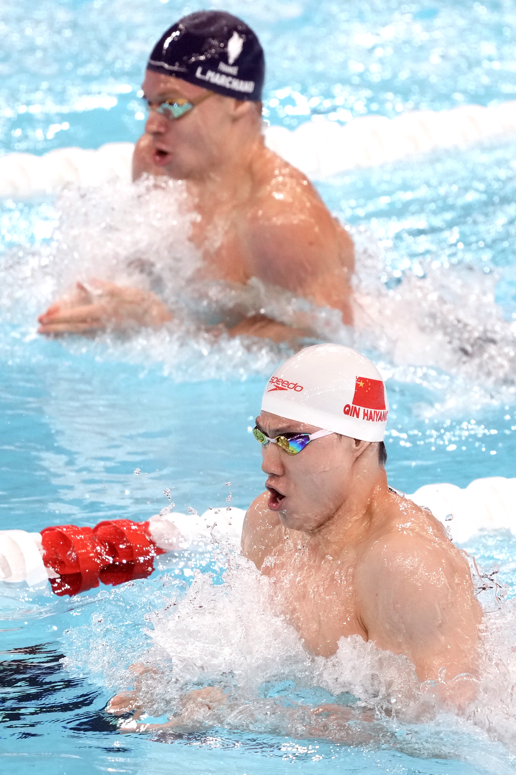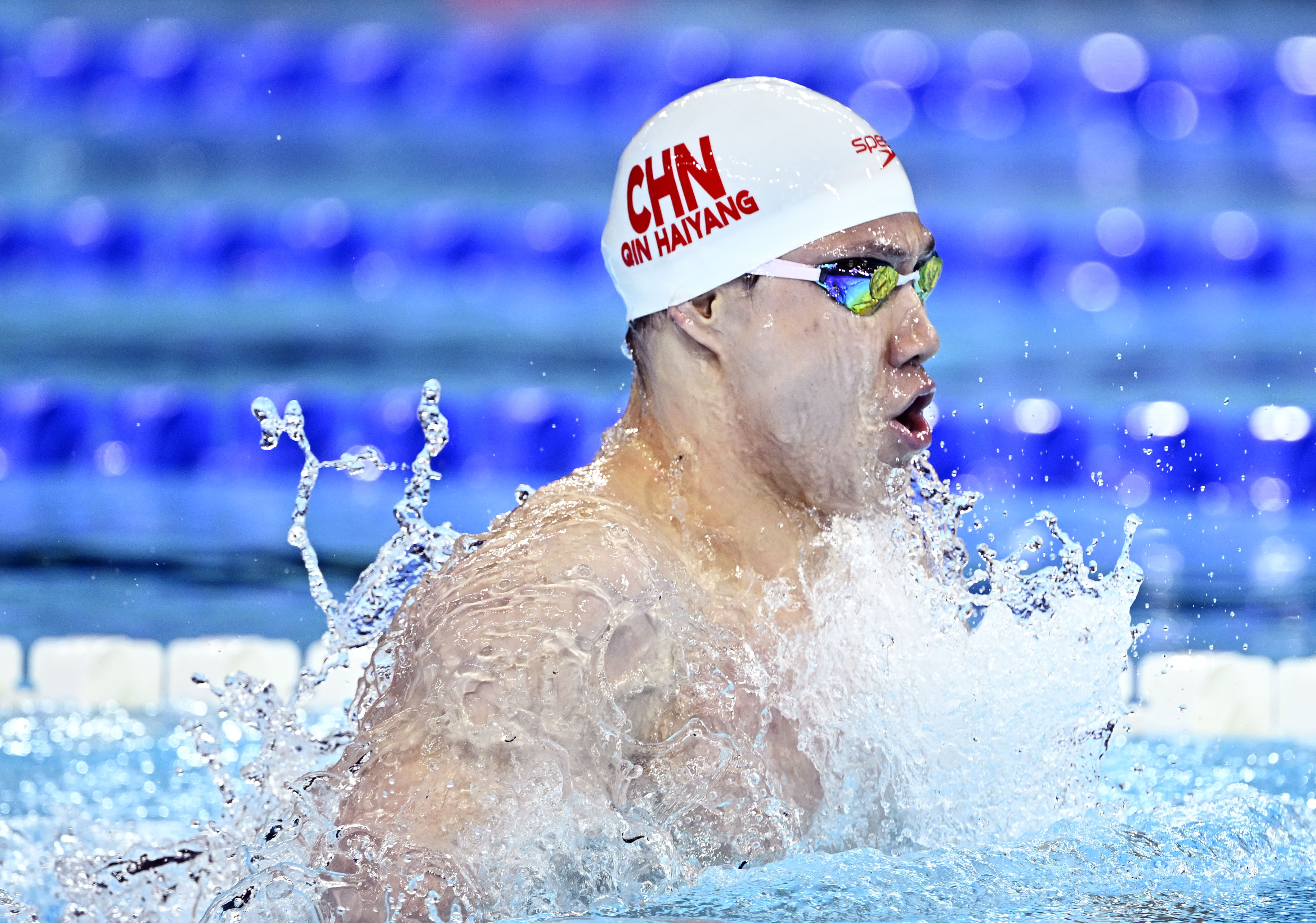 ↑中国队选手覃海洋在比赛中。新华社记者 雒圆 摄