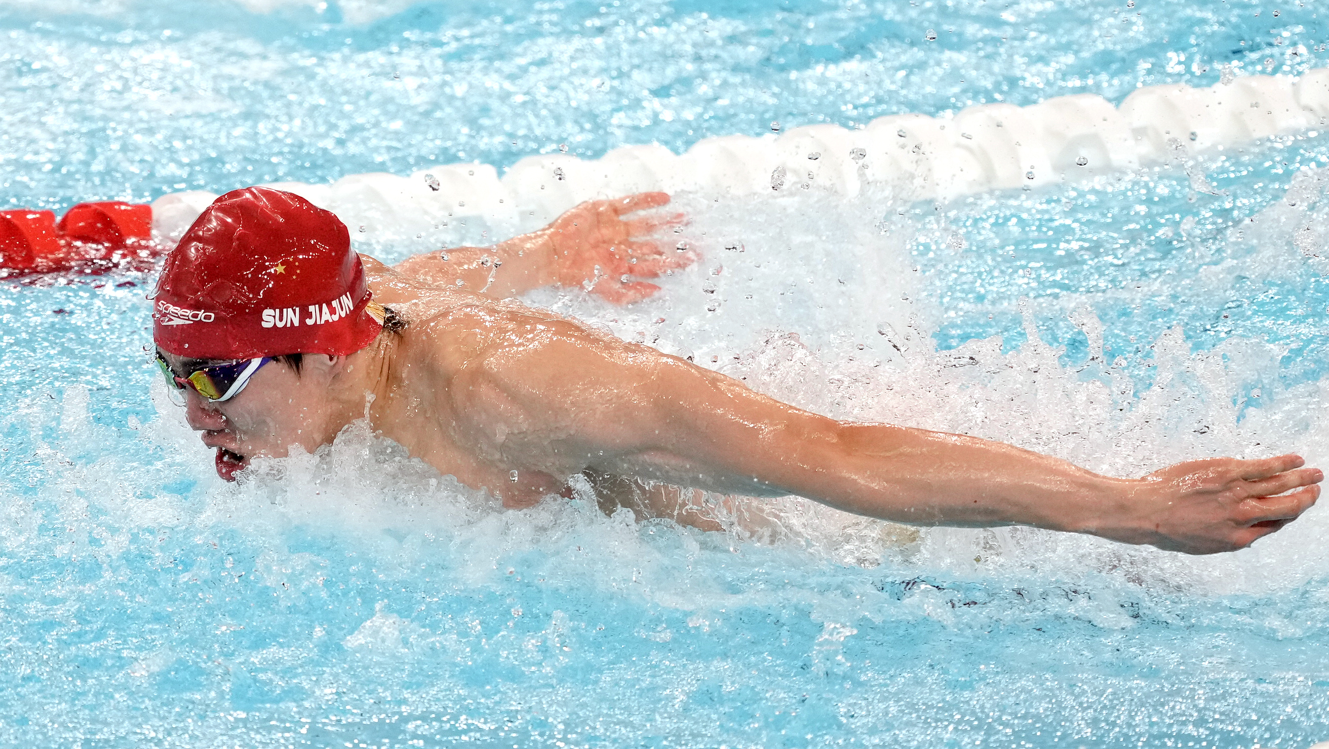↑中国队选手孙佳俊在比赛中。新华社记者 杜宇 摄