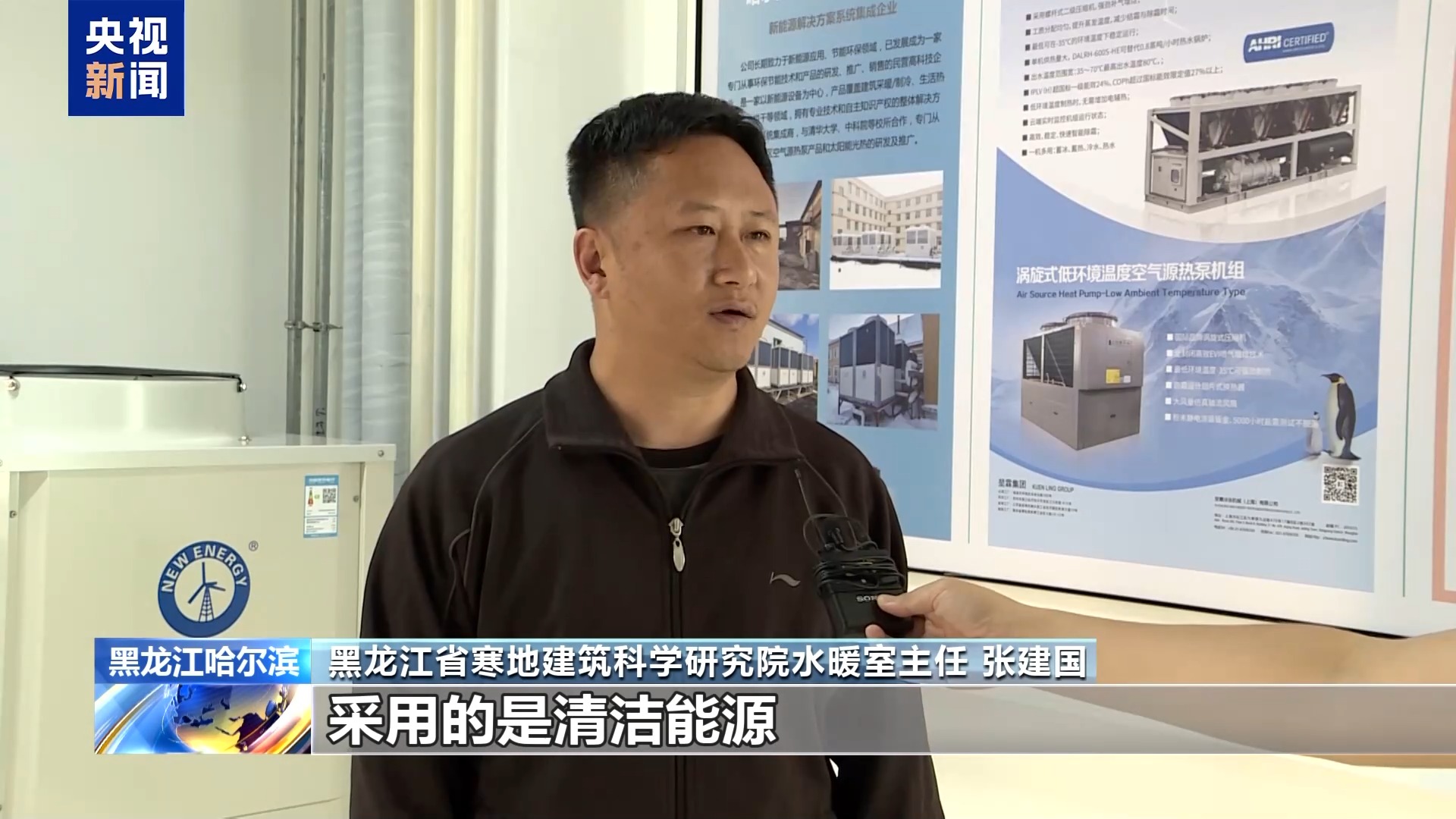 黑龙江省寒地建筑科学研究院水暖室主任 张建国:空气源热泵系统与传统的采暖系统相比,采用的是清洁能源,所以更加环保、更加节能。