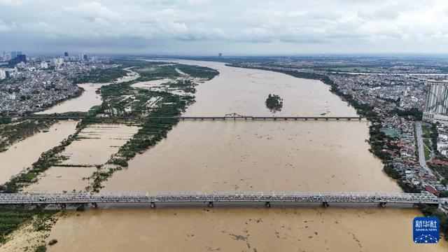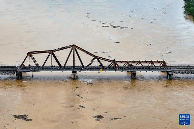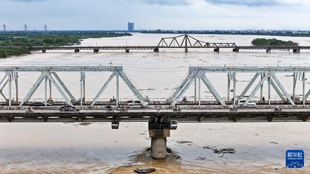 9月10日,在越南首都河内,河水上涨接近桥面。新华社/越通社
