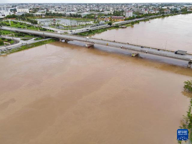 9月10日,在越南太平省,河水上涨接近桥面。新华社/越通社