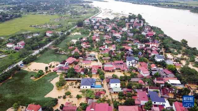 9月10日,在越南首都河内,滨河地区被上涨的河水淹没。新华社/越通社