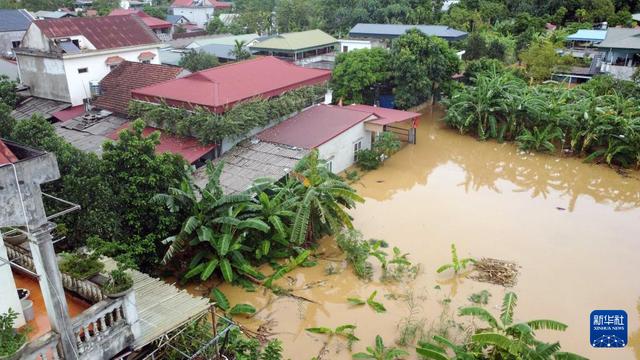 9月10日,在越南富寿省,民宅被洪水包围。新华社/越通社