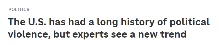 报道称,美国政治暴力的历史由来已久,但多个迹象表明,政治骚扰、威胁和暴力的范围及频率正在达到新的高点。马里兰大学(University of Maryland)犯罪学教授、该校恐怖主义及应对策略全美研究联盟(START Center)前主任加里·拉弗里(Gary LaFree)说:“有几年,我们的数据库中没有一例与21世纪出现在美国的恐怖主义相符的案例。但后来我们在2015年、2016年左右的时候看到了这种(暴力)的上升。”