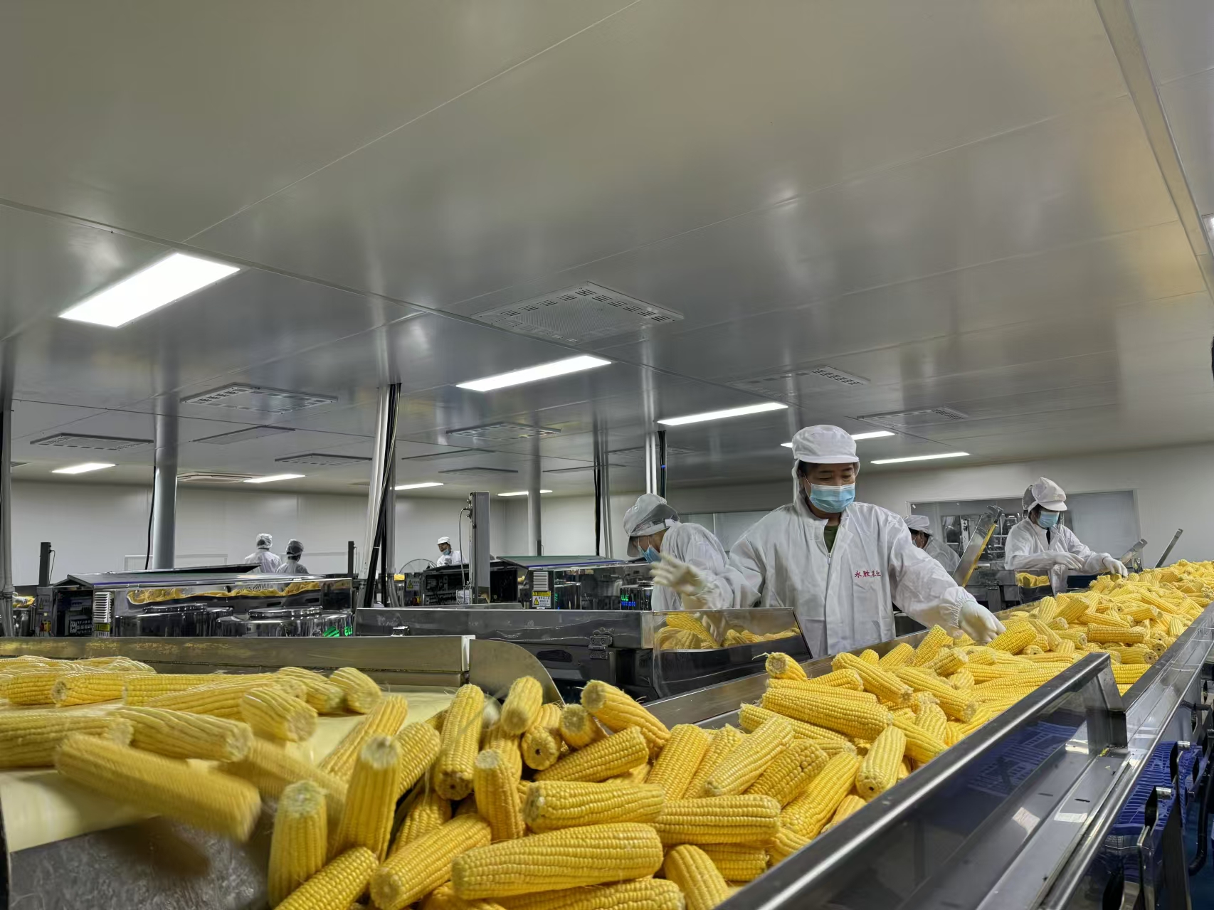 9月19日,永胜农机合作社的鲜食玉米加工车间,工人们正在加工鲜食玉米。新华社发 (雷霖摄)