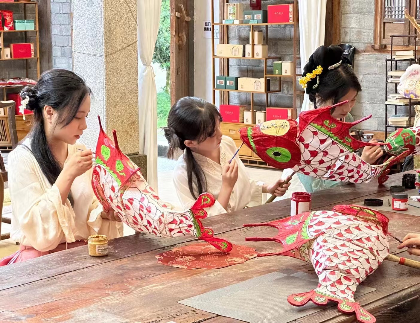 游客在西溪南村体验制作鱼灯。(受访者供图)