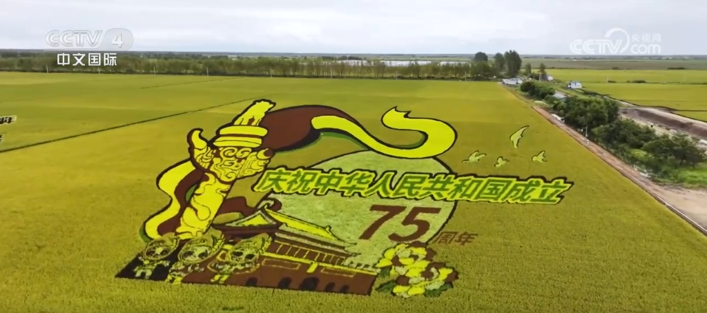 今年是新中国成立75周年,北大荒集团八五六农场特意制作了这幅应景的稻田画。登上26米的观景台,不仅可以看到四周不同主题的稻田画,万亩稻田也尽收眼底。