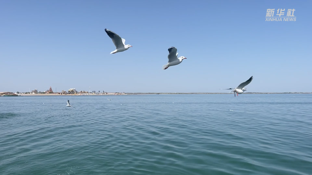 金秋时节,我国最大内陆淡水湖——新疆博斯腾湖天青水美,景色宜人。