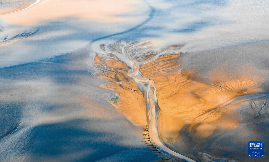 9月23日拍摄的江苏东台条子泥湿地“潮汐树”景观(无人机照片)。