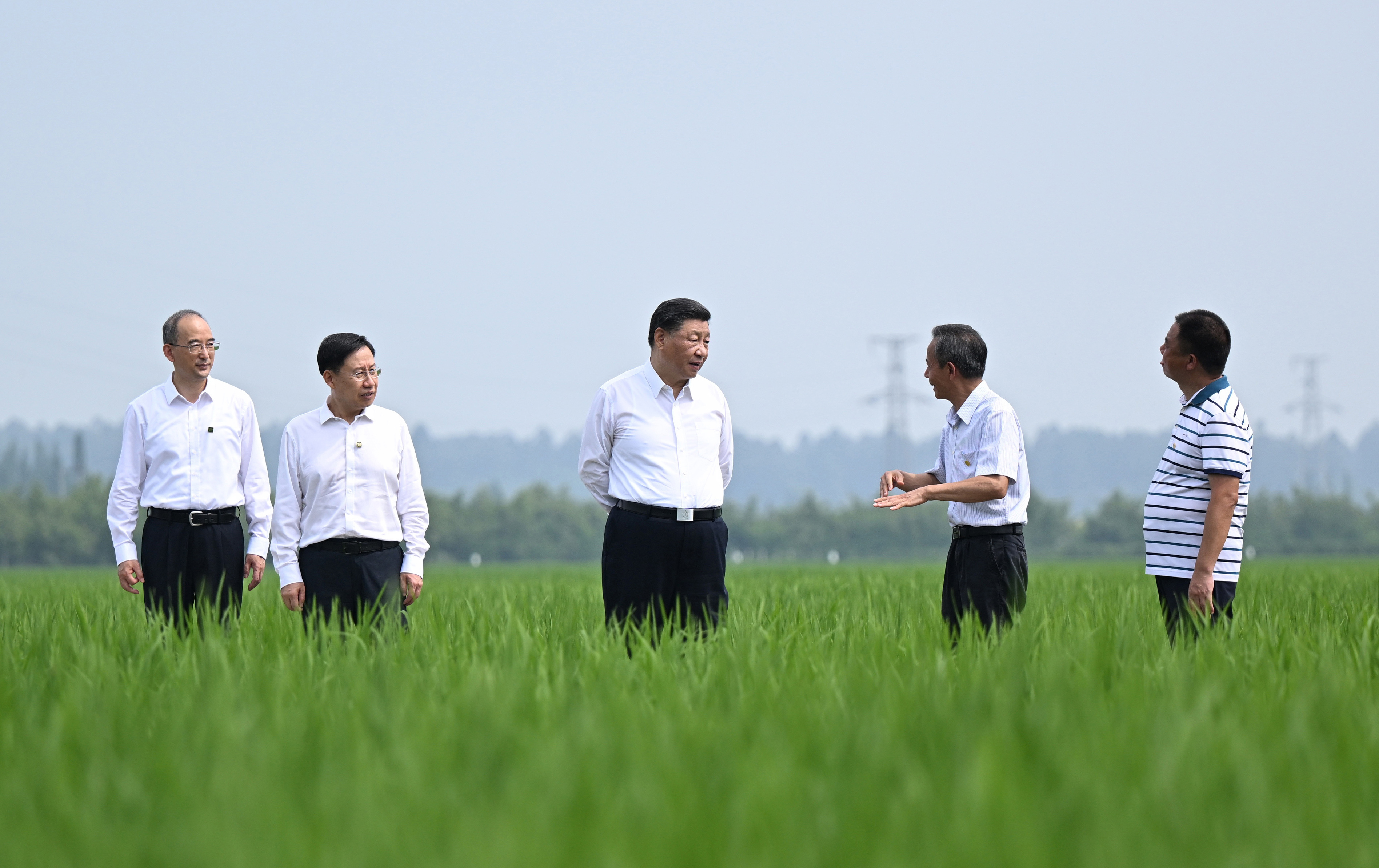 2022年6月8日上午,习近平在四川眉山市东坡区太和镇永丰村高标准水稻种植基地考察,了解水稻试验育种和种植推广情况。习近平强调:推进农业现代化,既要靠农业专家,也要靠广大农民。要加强现代农业科技推广应用和技术培训,把种粮大户组织起来,积极发展绿色农业、生态农业、高效农业。我们有信心、有底气把中国人的饭碗牢牢端在自己手中。