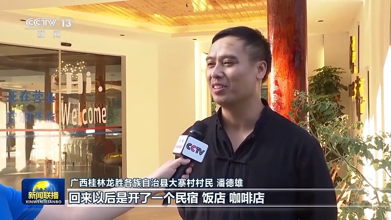 广西桂林龙胜各族自治县大寨村村民 潘德雄:回来以后开了一个民宿、饭店、咖啡店。各民族的一些兄弟也都到我们这边做生意,大家都相处得非常好。