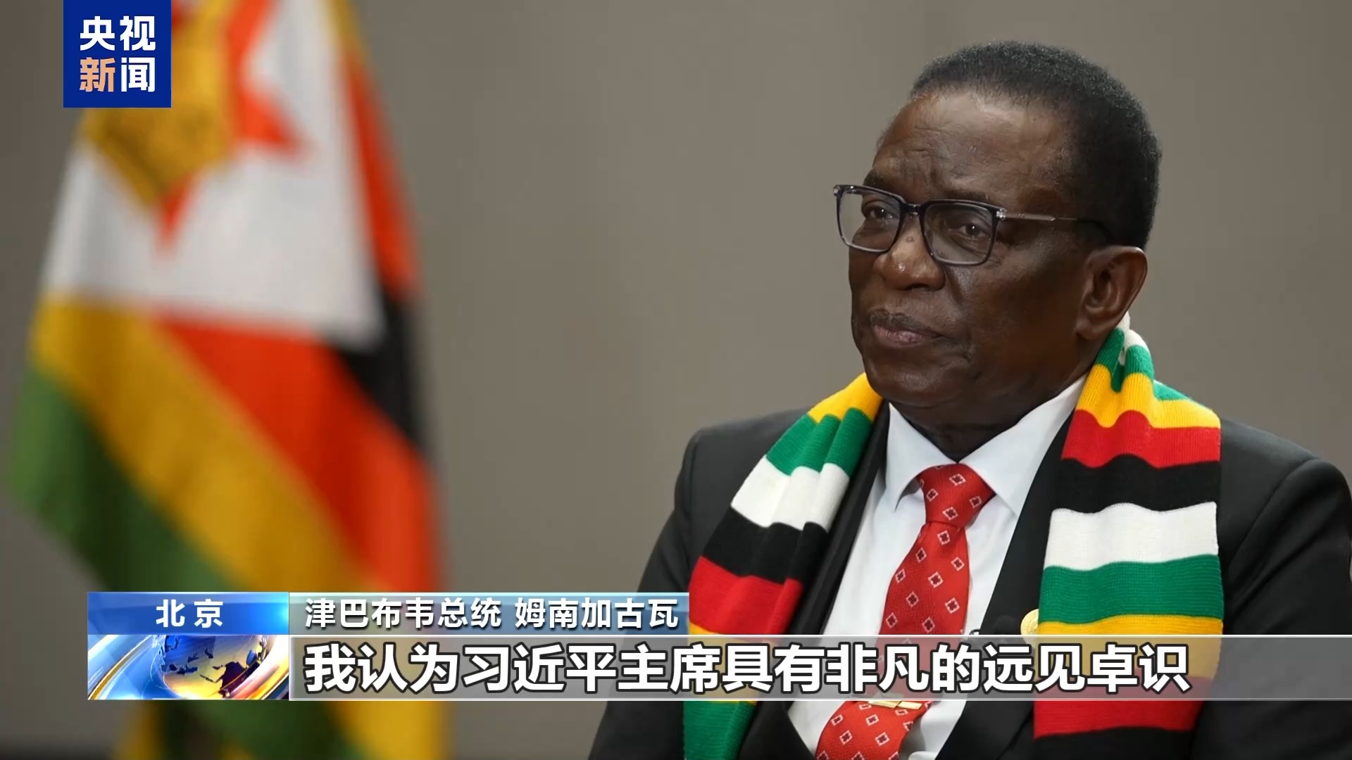 今天(4日),来华出席中非合作论坛北京峰会并进行国事访问的津巴布韦总统姆南加古瓦在北京接受了总台《高端访谈》的独家专访。姆南加古瓦表示,他非常赞同习近平主席提出的“五星铁杆”合作架构,中国式现代化对津巴布韦和其他非洲国家具有重要的借鉴意义。